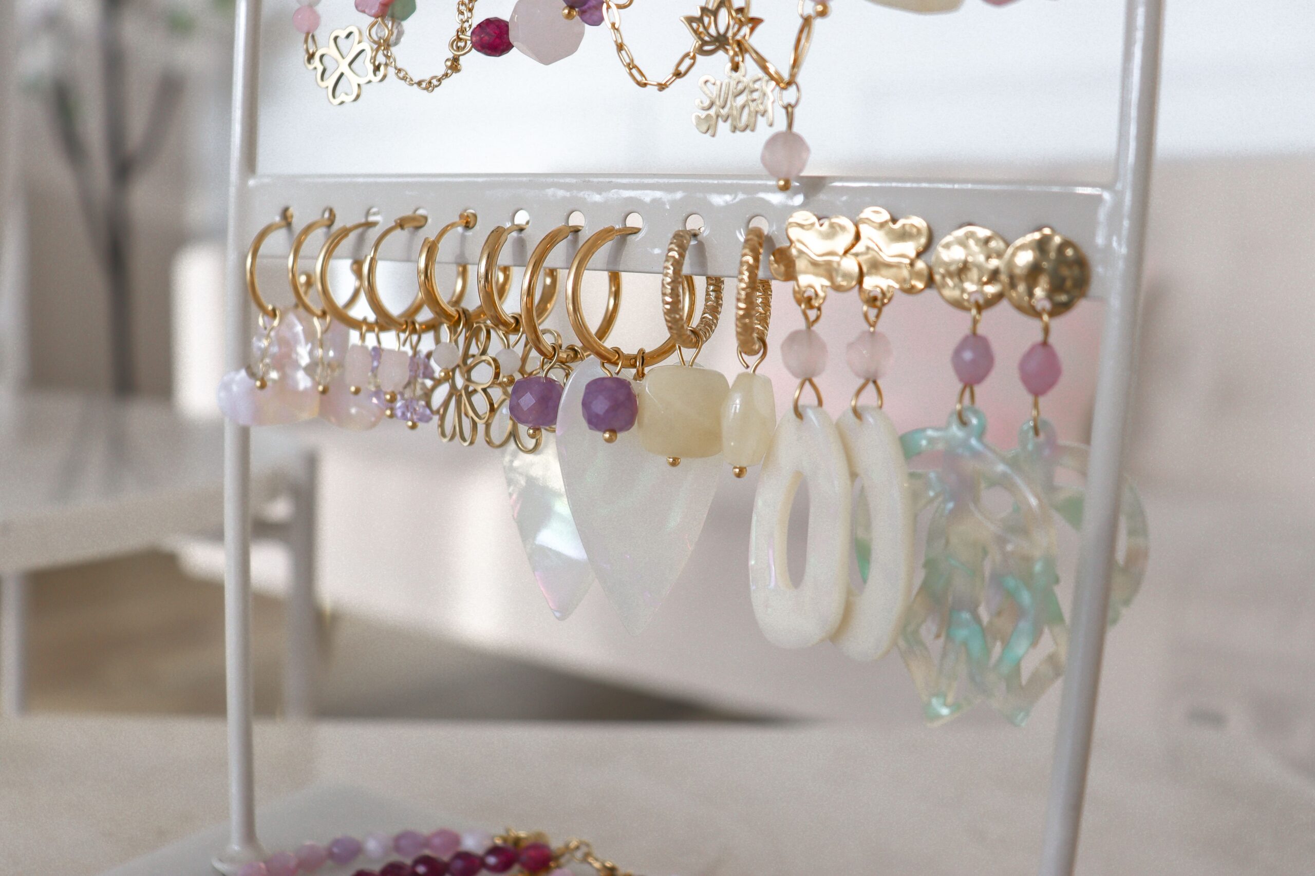 Deze oorringen met edelsteen en parelmoer zijn geschikt voor dagelijks gebruik, maar ook perfect voor een feestelijke of bijzondere gelegenheid. Ze laten zich gemakkelijk combineren met andere sieraden en geven elke outfit net dat beetje extra.
