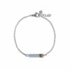 Aquamarijn & Labradoriet armband, met een klein labradoriet hangertje bij het slotje. Het armbandje is gemaakt van stainless steel, net als alle andere sieraden in de collectie. Alle sieraden zijn sterk, duurzaam, hypoallergeen en kleurvast.
