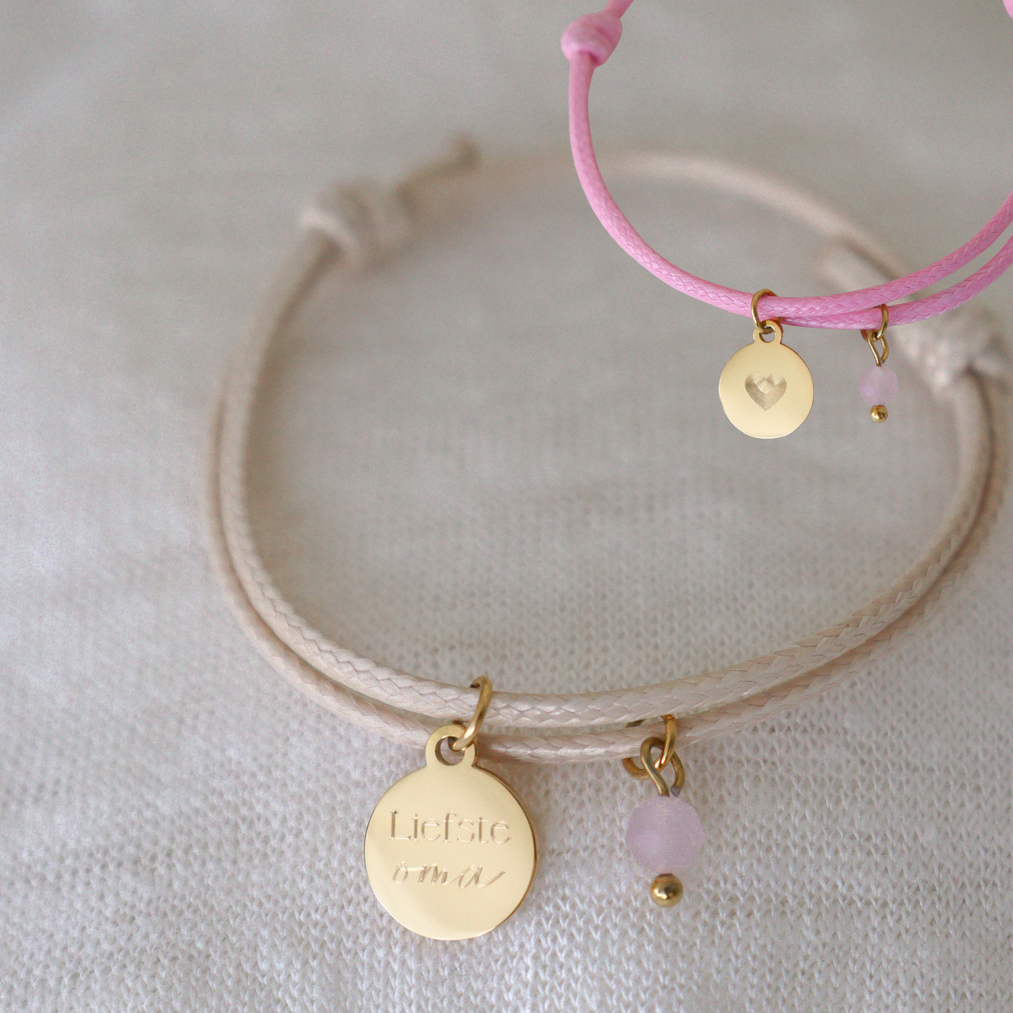 Als extra bijzonder detail hangt er aan het armbandje een facet geslepen Rozenkwarts steentje van 4 mm. Door de subtiele schittering geeft dit steentje het armbandje een zachte en luxe uitstraling. Rozenkwarts staat symbool voor liefde, warmte en harmonie, waardoor het een prachtige en betekenisvolle toevoeging is aan een cadeau voor oma.