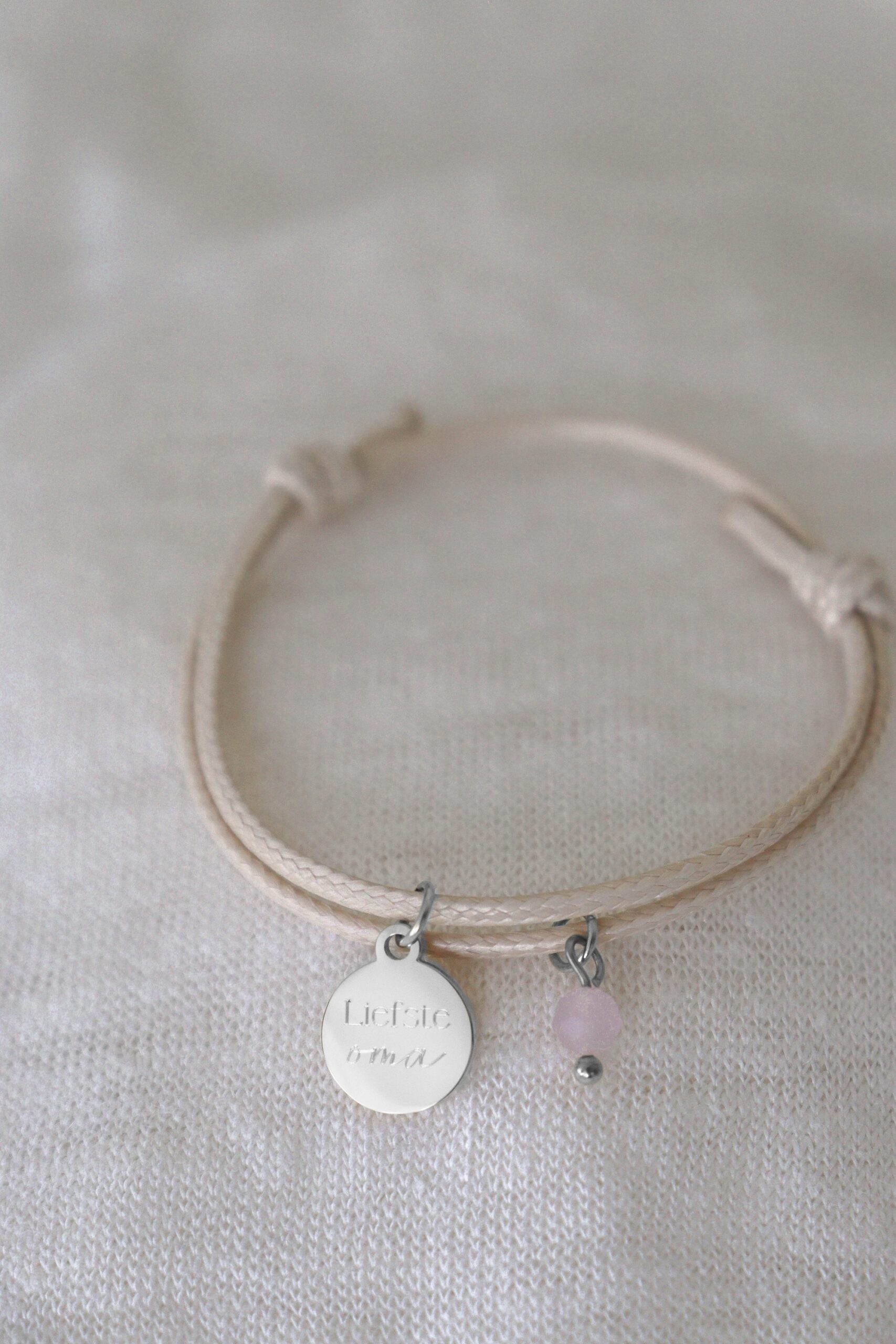 Het armbandje is gemaakt van duurzaam waxkoord en heeft daardoor een comfortabele, elegante uitstraling. Door het verstelbare schuifknoopje past de armband vrijwel altijd en kan deze gedragen worden van klein tot extra wijd. Hierdoor is het een makkelijk en geliefd cadeau om te geven.
