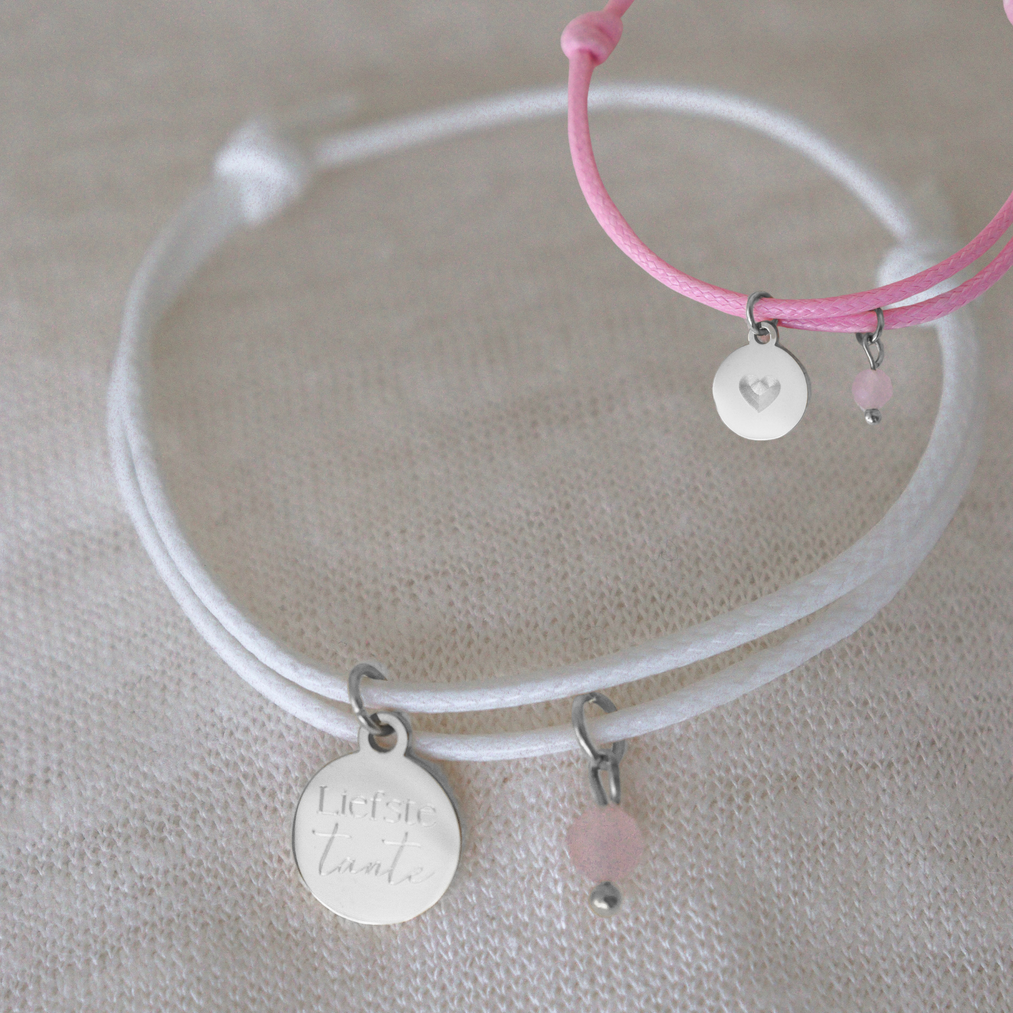 Als extra bijzonder detail hangt er aan het armbandje een facet geslepen Rozenkwarts steentje van 4 mm. Door de subtiele schittering geeft dit steentje het armbandje een zachte en luxe uitstraling. Rozenkwarts staat symbool voor liefde, warmte en harmonie, waardoor het een prachtige en betekenisvolle toevoeging is aan een cadeau voor tante.