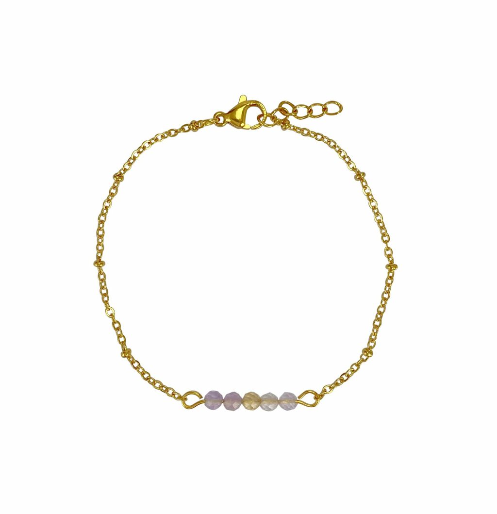 Stainless steel armbandje met Ametrien steentjes. Ametrien is een kruising van Amethist en Citrien, deze twee stenen zijn met elkaar vergroeid en daardoor is het een krachtige steen.