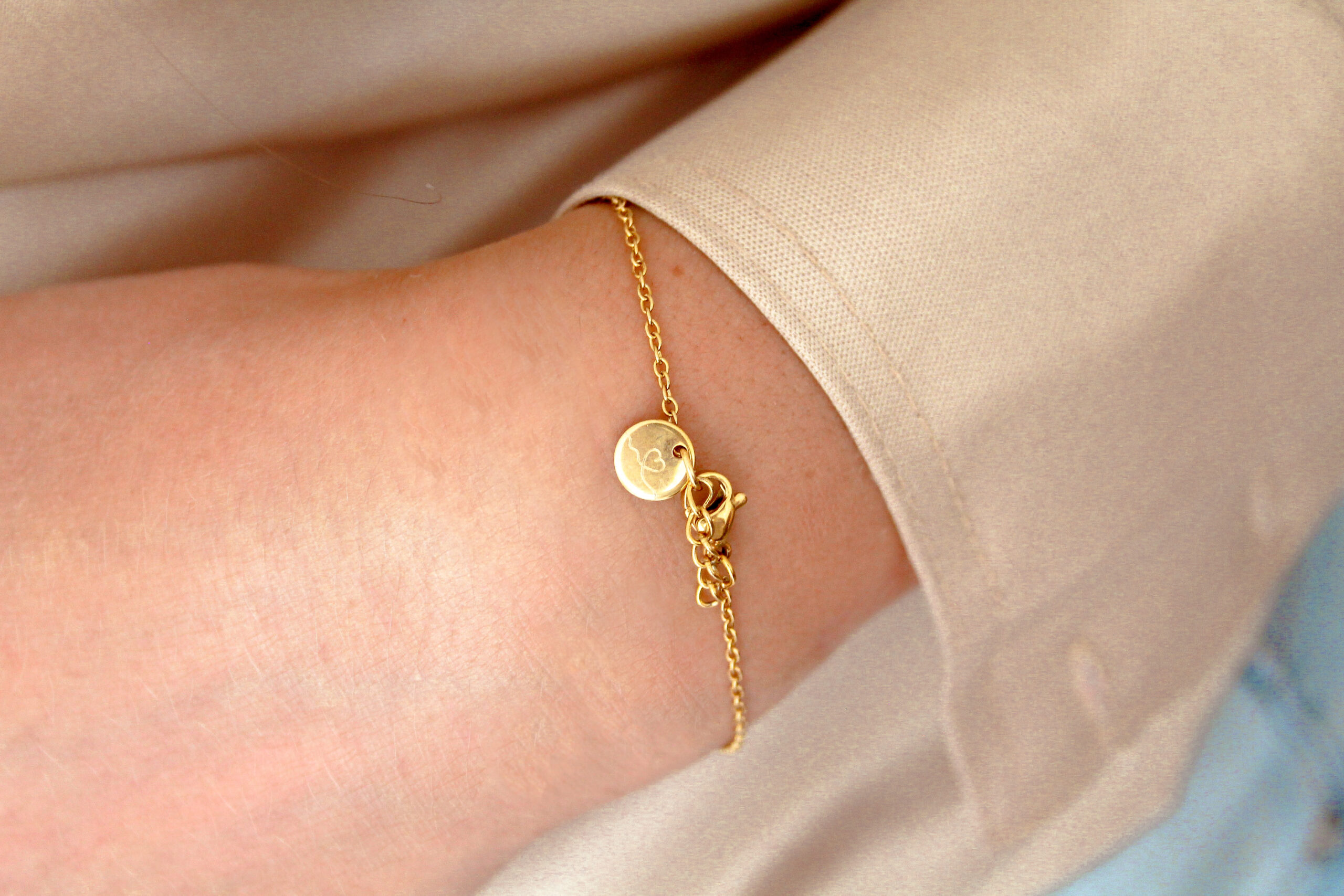 Stainless steel armbandje met een bedeltje met een hartje er op gegraveerd. Het bedeltje is ontworpen en gegraveerd in ons eigen atelier.