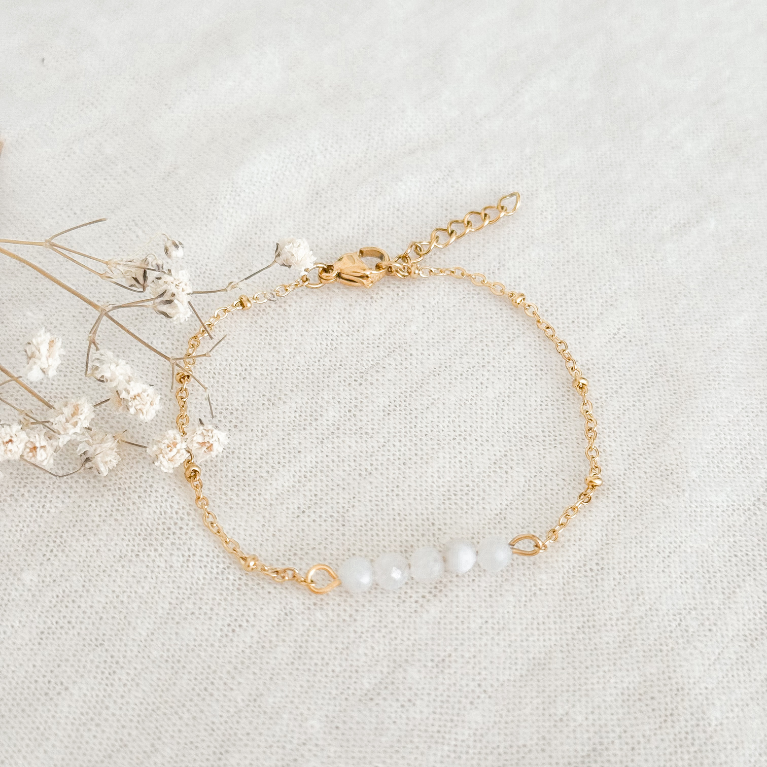 De vijf maanstenen zijn facet geslepen, wat zorgt voor een subtiele schittering bij elke beweging. Als een herinnering aan jouw innerlijke kracht, ook als je even twijfelt.