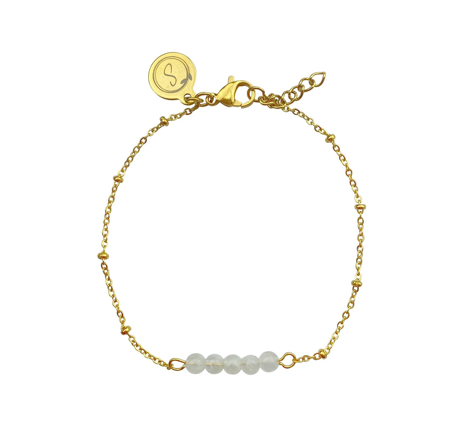 Waar dit sieraad echter écht van gaat stralen, zijn de maansteentjes. Deze witte stenen met een zachte blauwachtige glans, ook wel regenboog maansteen genoemd, geven het armbandje een subtiele, mystieke uitstraling. Ze staat bekend als de vrouwelijke steen die staat voor liefde en voortplanting. Maansteen staat ook bekend als de steen die helpt bij onvruchtbaarheid en die ook werkelijk hele mooie resultaten geeft. De oorzaak van de onvruchtbaarheid is belangrijk, maar ligt dit aan de hormoonhuishouding of gespannenheid dan is Maansteen de perfecte steen. Het is een perfecte steen voor vrouwen, omdat hormoonbalans erg belangrijk is. Ook helpt het tegen menstruele klachten en versnelt het de spijsvertering.