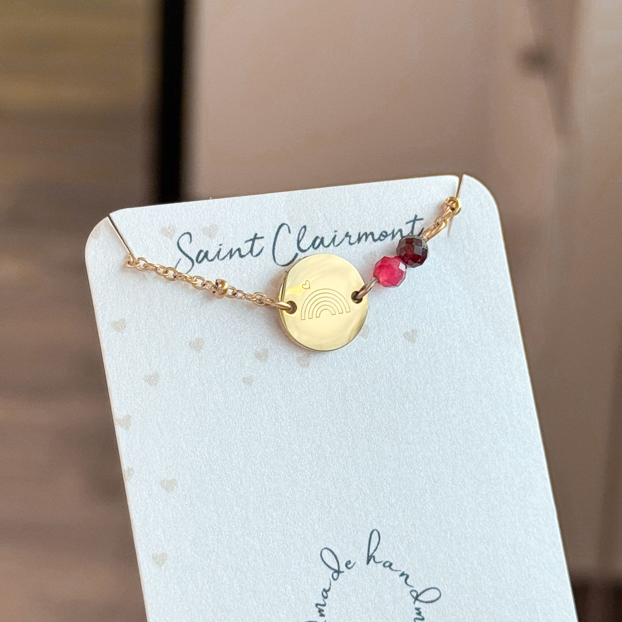 Op de ronde bedel is een fijne regenboog gegraveerd, samen met een klein hartje. De regenboog staat voor licht na donkere dagen, het hartje voor oneindige liefde. De gravure is bewust ingetogen gehouden, zodat het armbandje met rust en elegantie gedragen kan worden, elke dag opnieuw.