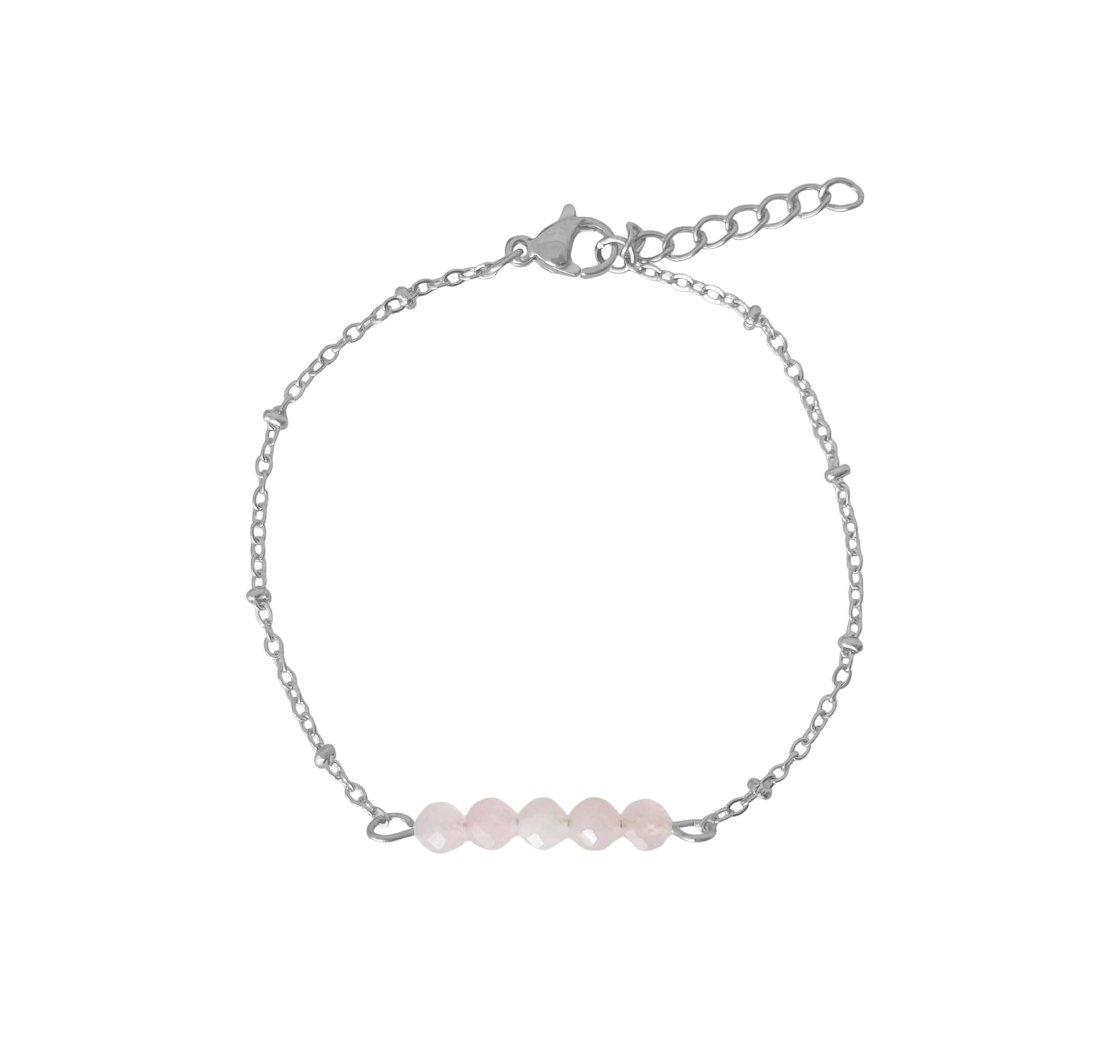 Armbandje Rozenkwarts Facet, gemaakt van stainless steel. Sieraden met een boodschap, daar geloven we in. Dit fijne Rozenkwarts Facet Armbandje is meer dan een subtiel accessoire. Het is een klein stukje liefde dat je elke dag bij je draagt.