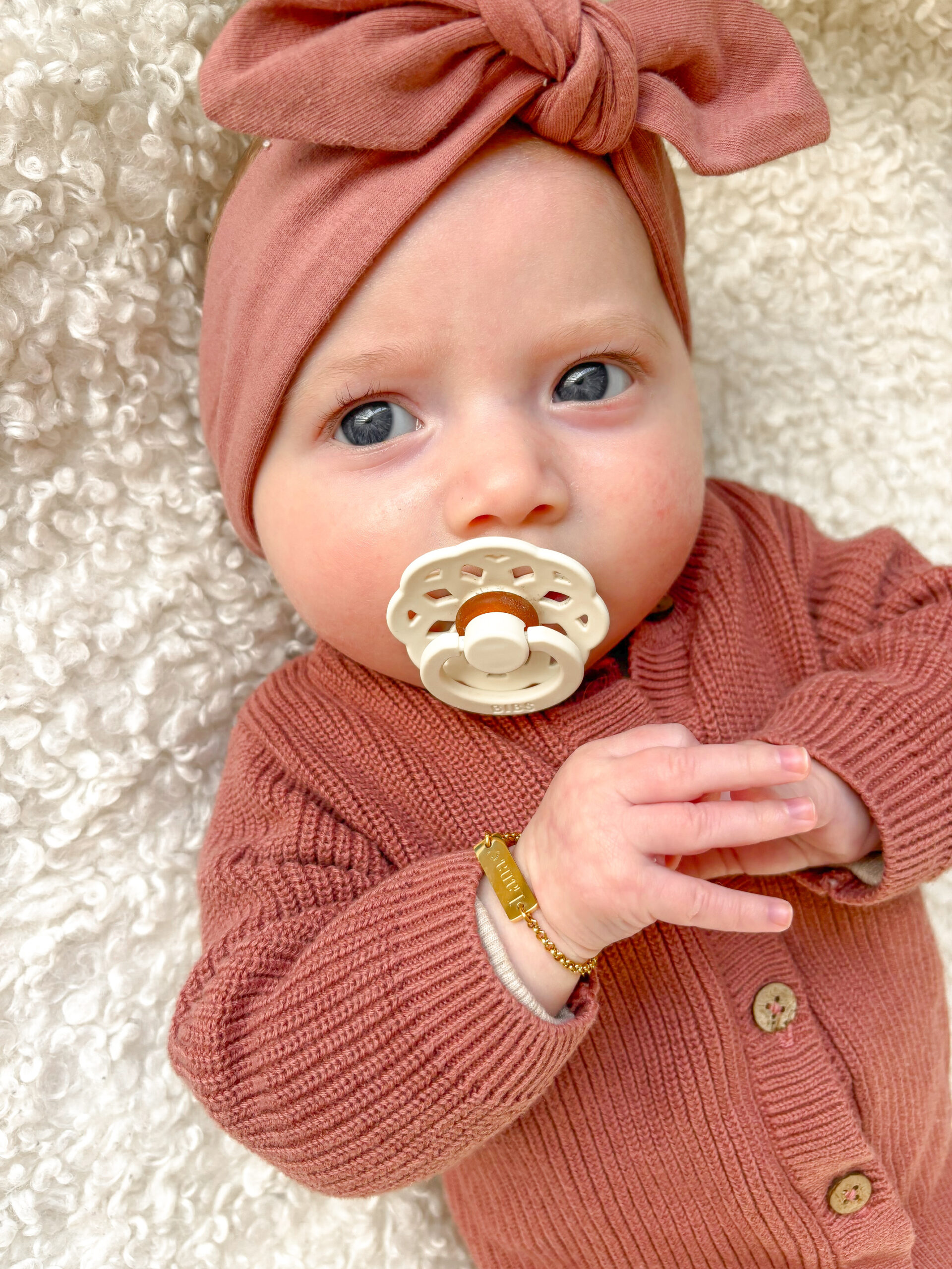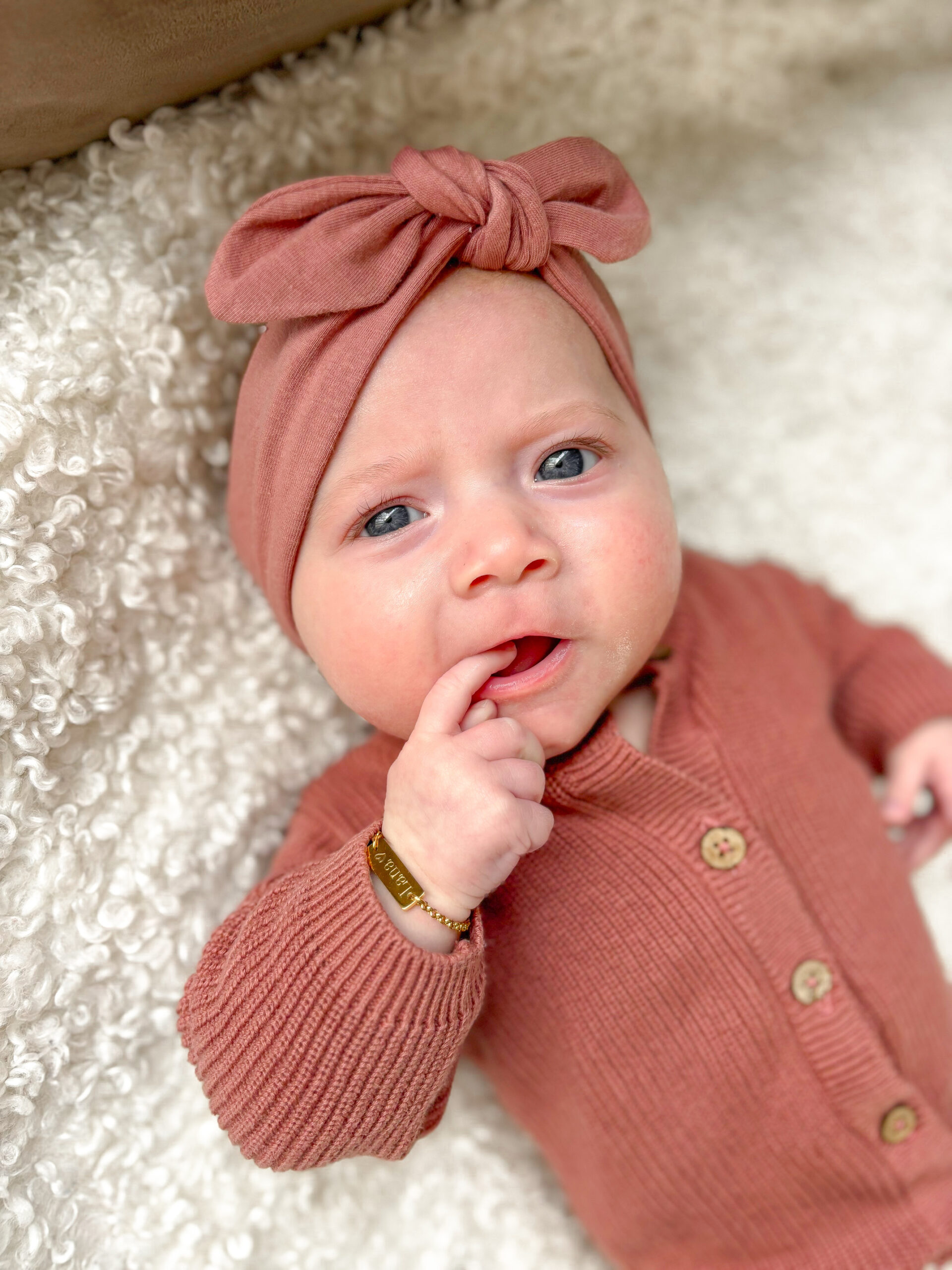 Het armbandje heeft een lang verleng kettinkje, zodat het armbandje kan meegroeien met jouw kindje.