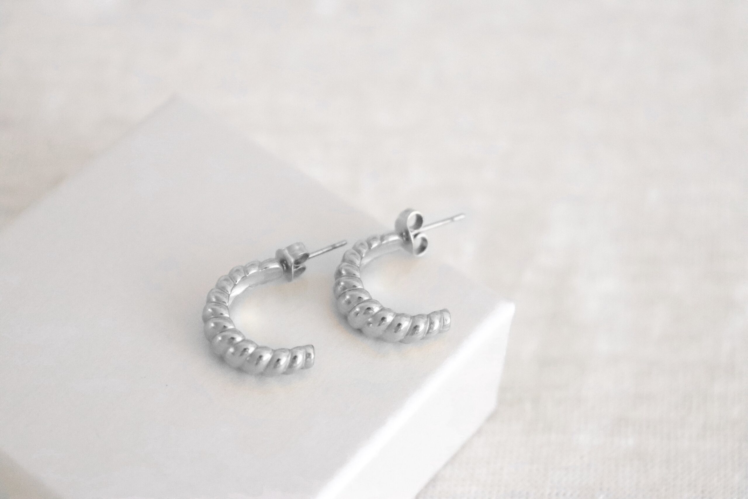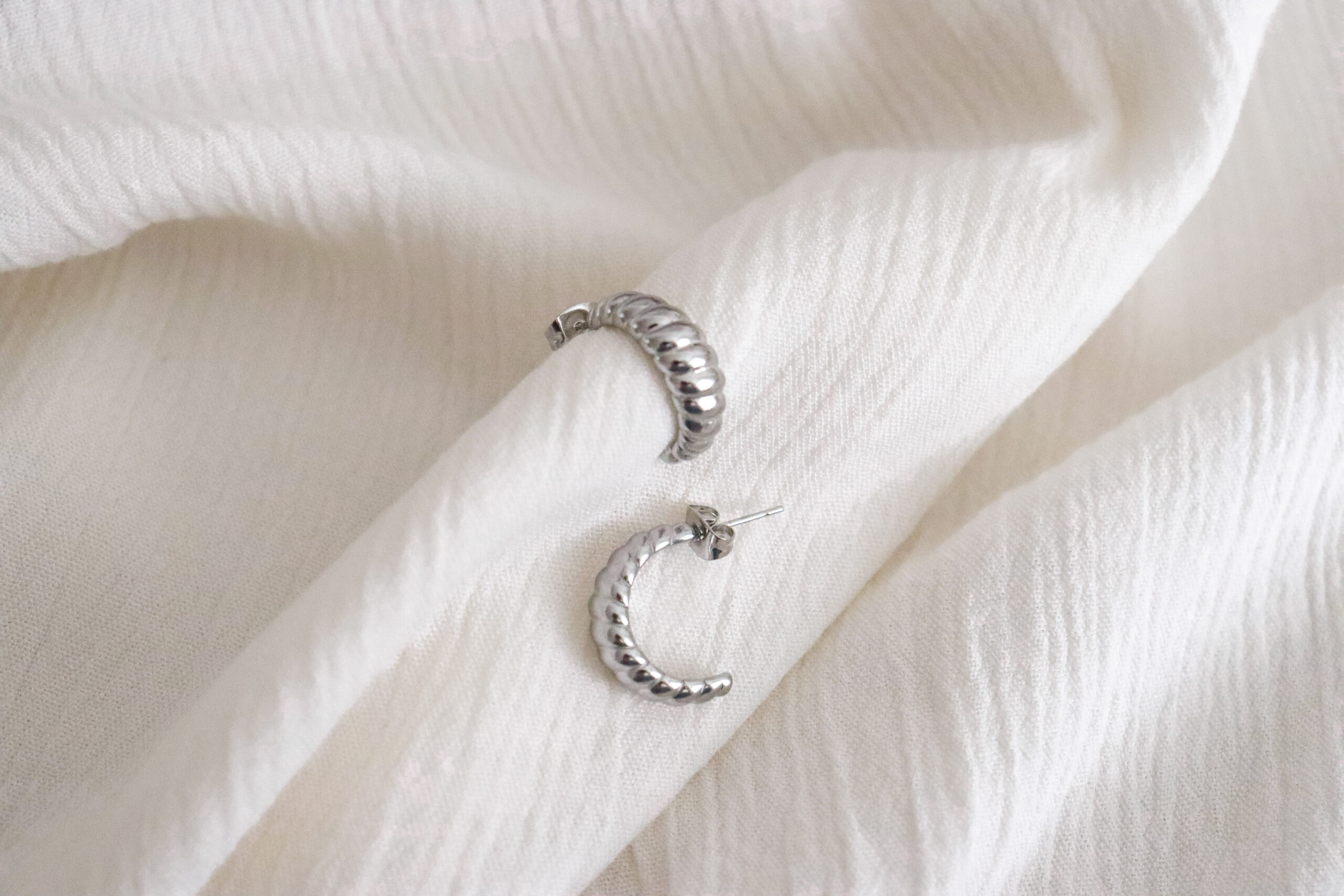 Chunky Croissant Hoops, gemaakt van stainless steel. De hoops zijn hypoallergeen, duurzaam, sterk en verkleuren niet. We hebben nog veel meer croissant sieraden in onze sieraden, waar je een hele mooie set mee kunt maken. Waarom heet het een croissant ring? Omdat het op een croissantje lijkt!