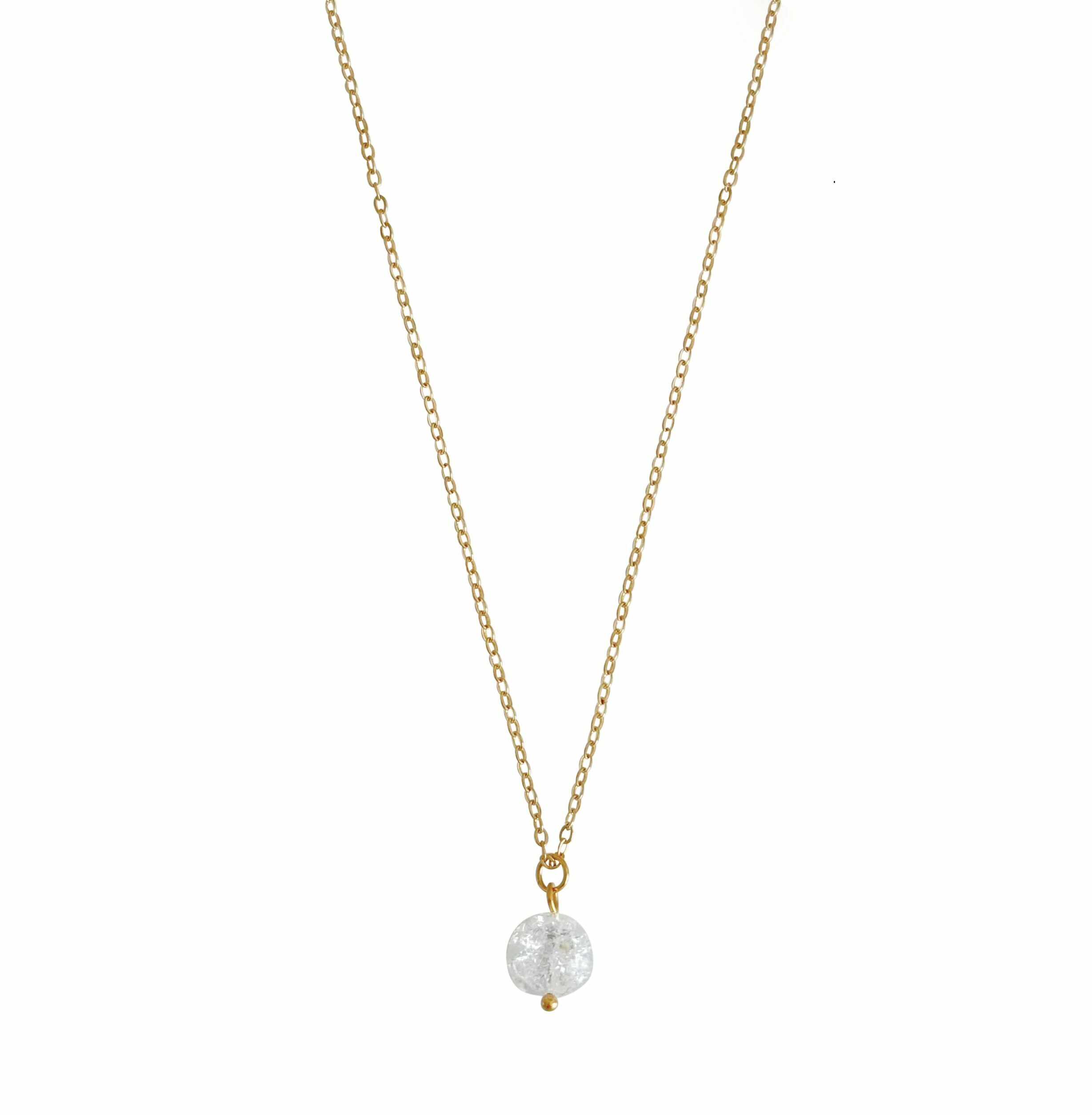 Cracked Bergkristal Ketting, gemaakt van stainless steel. De Bergkristal steen heeft door de gebarsten patroontjes een unieke look. De ketting is perfect voor feestelijke gelegenheden, zoals Kerstmis, of juist om te dragen op jouw bruiloft!