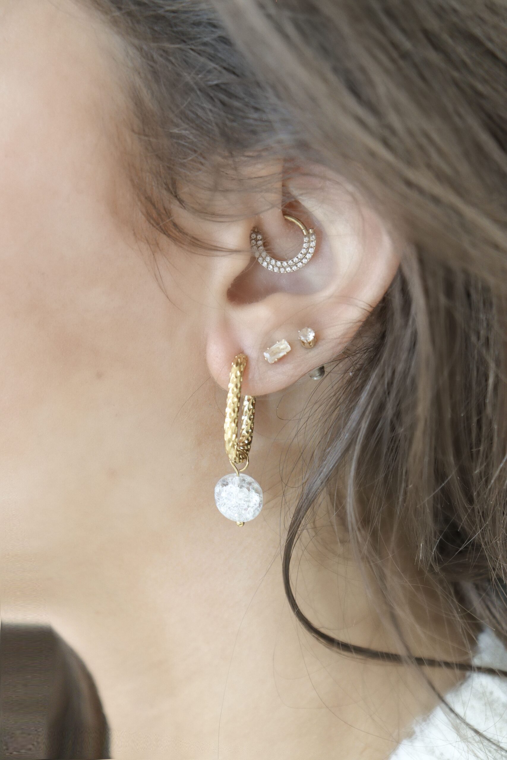 Cracked Bergkristal Oorringen – Goud