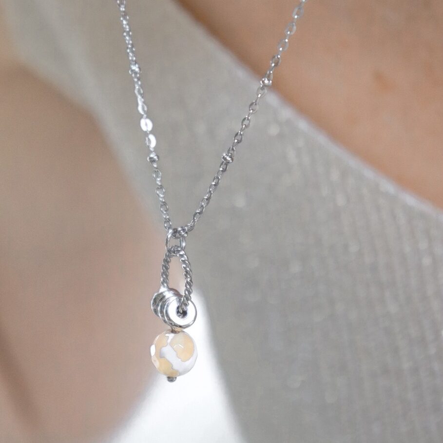 Dzi Agaat ketting, gemaakt van stainless steel. De ketting is hypoallergeen, kleurvast, duurzaam, sterk en betaalbaar. Je vindt het Dzi Agaat steentje in meerdere sieraden in onze collectie terug, zo kun je een leuke sieraden set samen stellen. Ga hier bijvoorbeeld naar het Dzi Agaat & Maansteen armbandje.