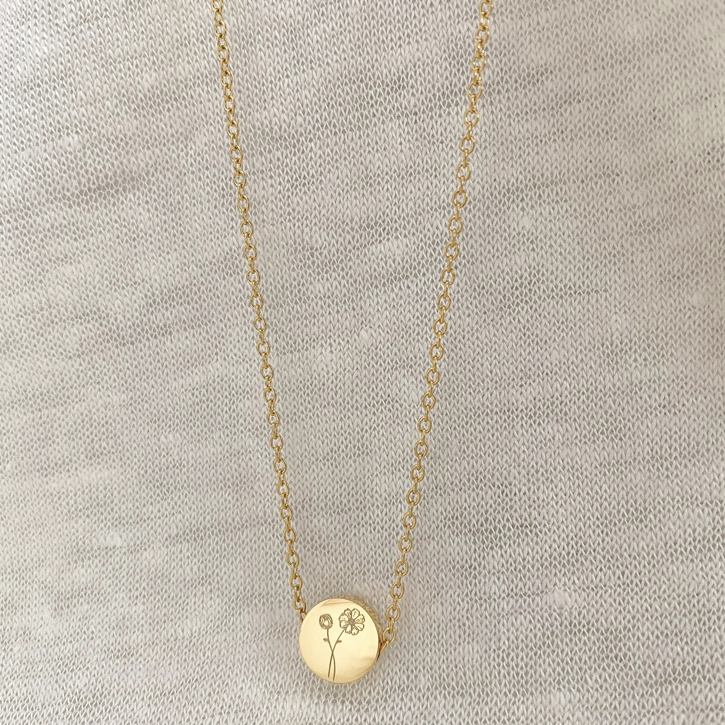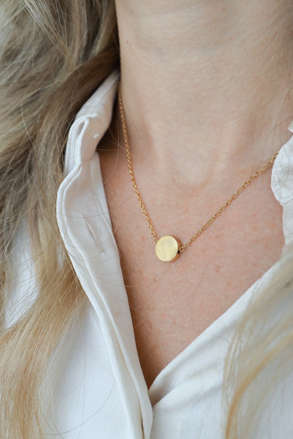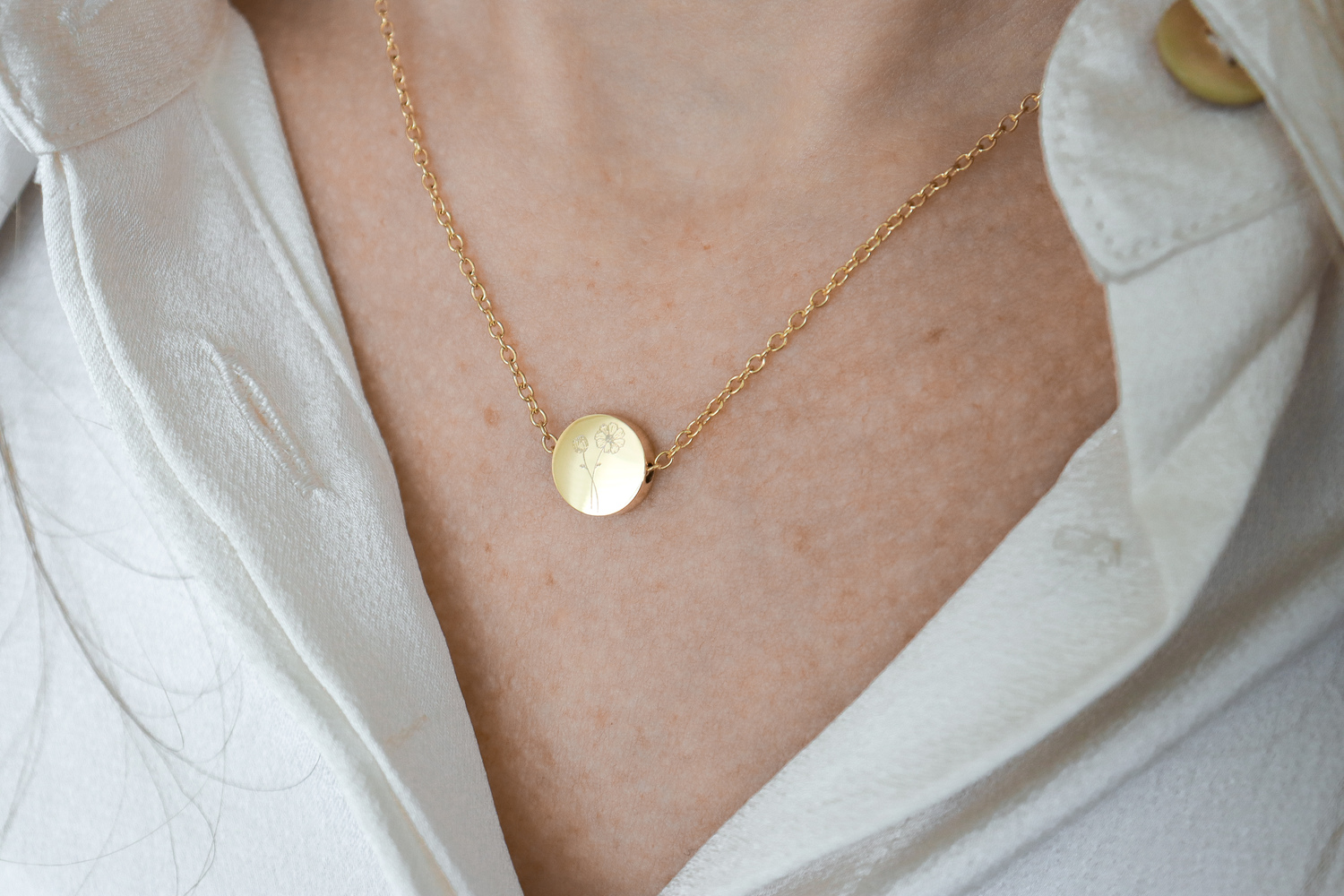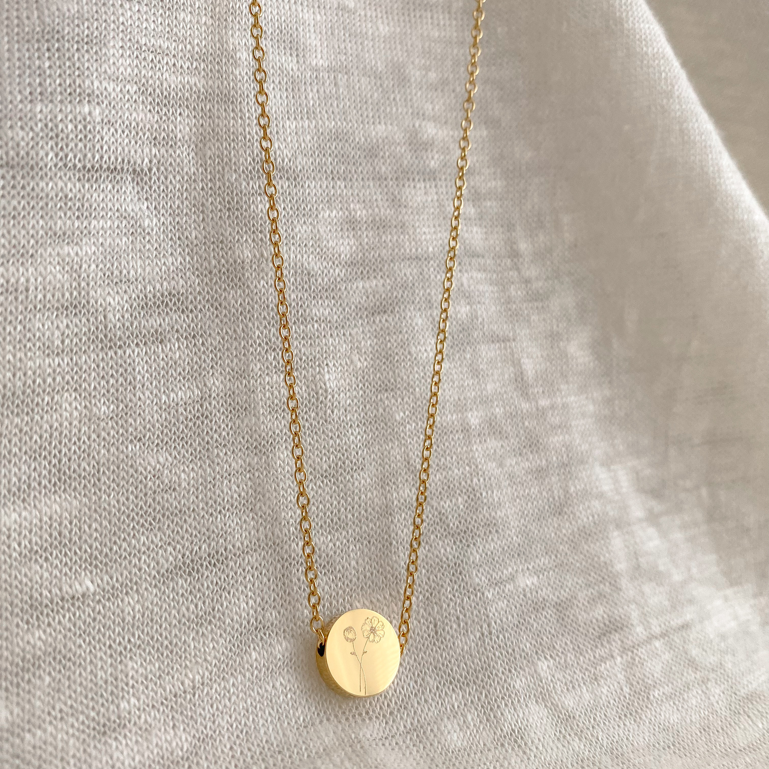 Je kunt de achterkant personaliseren met initialen, een (korte) naam of nog een geboortebloem. Hiermee kun je de ketting nog persoonlijker en dierbaarder maken.