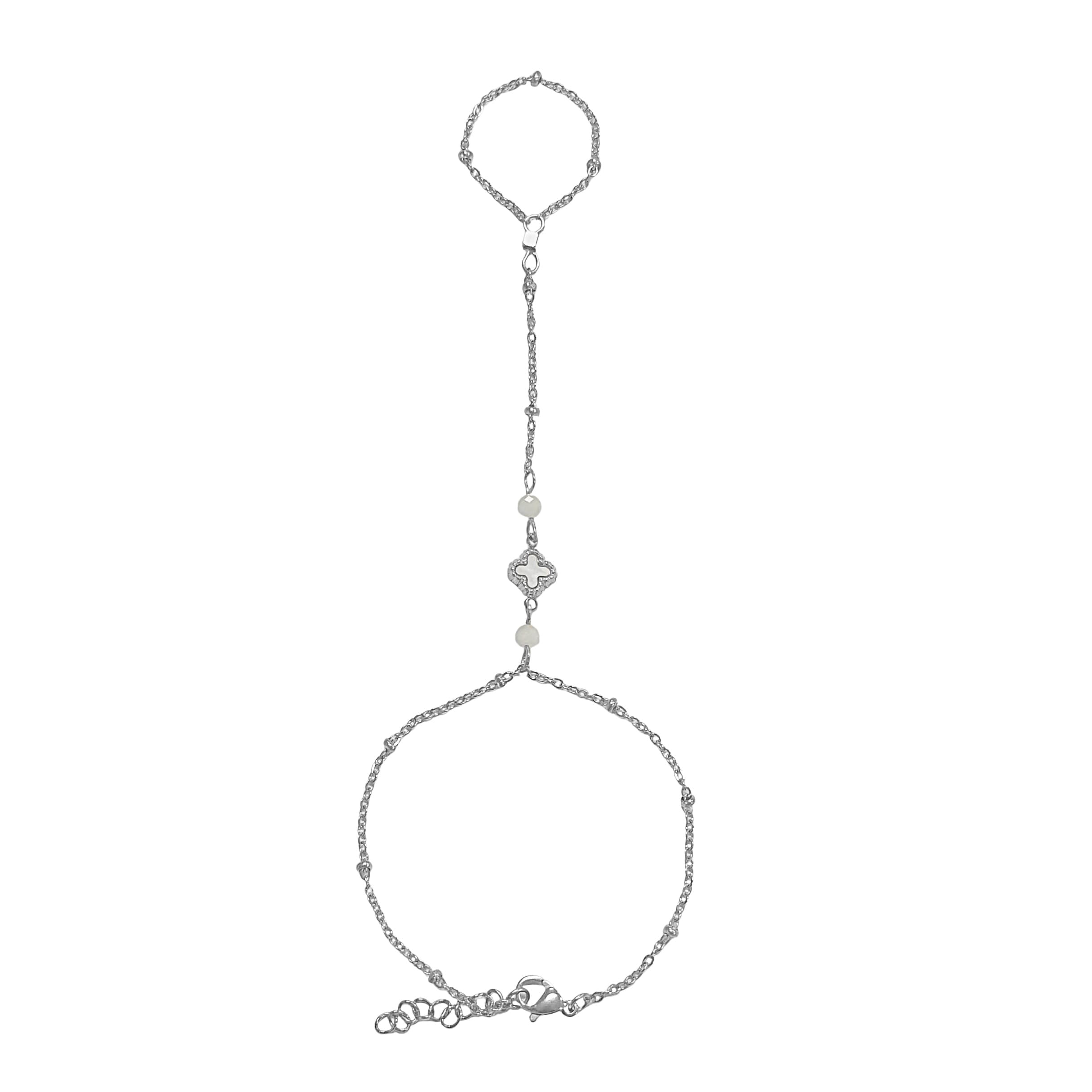 Handketting Maansteen & Klaver, gemaakt van stainless steel. Deze handketting, ook wel slavenarmband genoemd, combineert stijl met symboliek. De ketting loopt elegant over de hand en is verbonden met een ring. Gemaakt van dezelfde ketting, voor een modern en trendy effect. Het speelse ontwerp heeft verfijnde details die elke outfit net dat beetje extra geven.