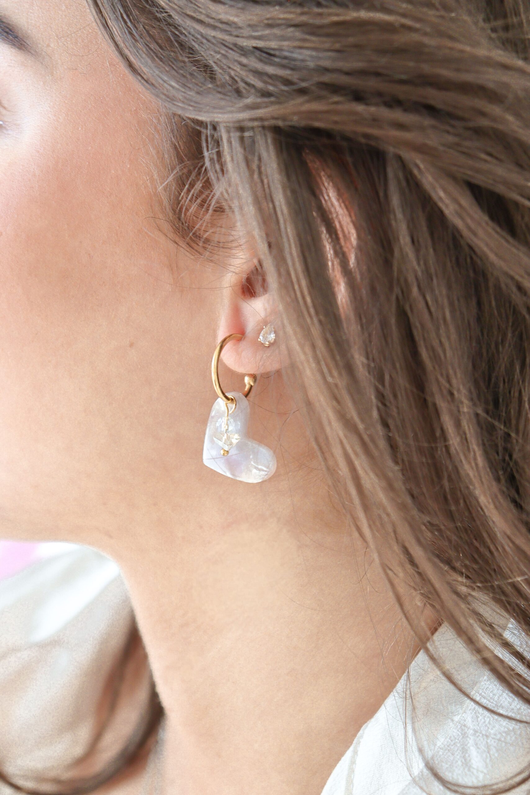 Hartje Oorringen Bergkristal, gemaakt van stainless steel. De oorbellen hebben een doorsnee van 1.2 cm en zijn daardoor licht en comfortabel om dagelijks te dragen. De hartjes zijn gemaakt van hoogwaardig acryl met een mooie glans en zachte pastelkleuren, wat zorgt voor een frisse en vrouwelijke uitstraling.