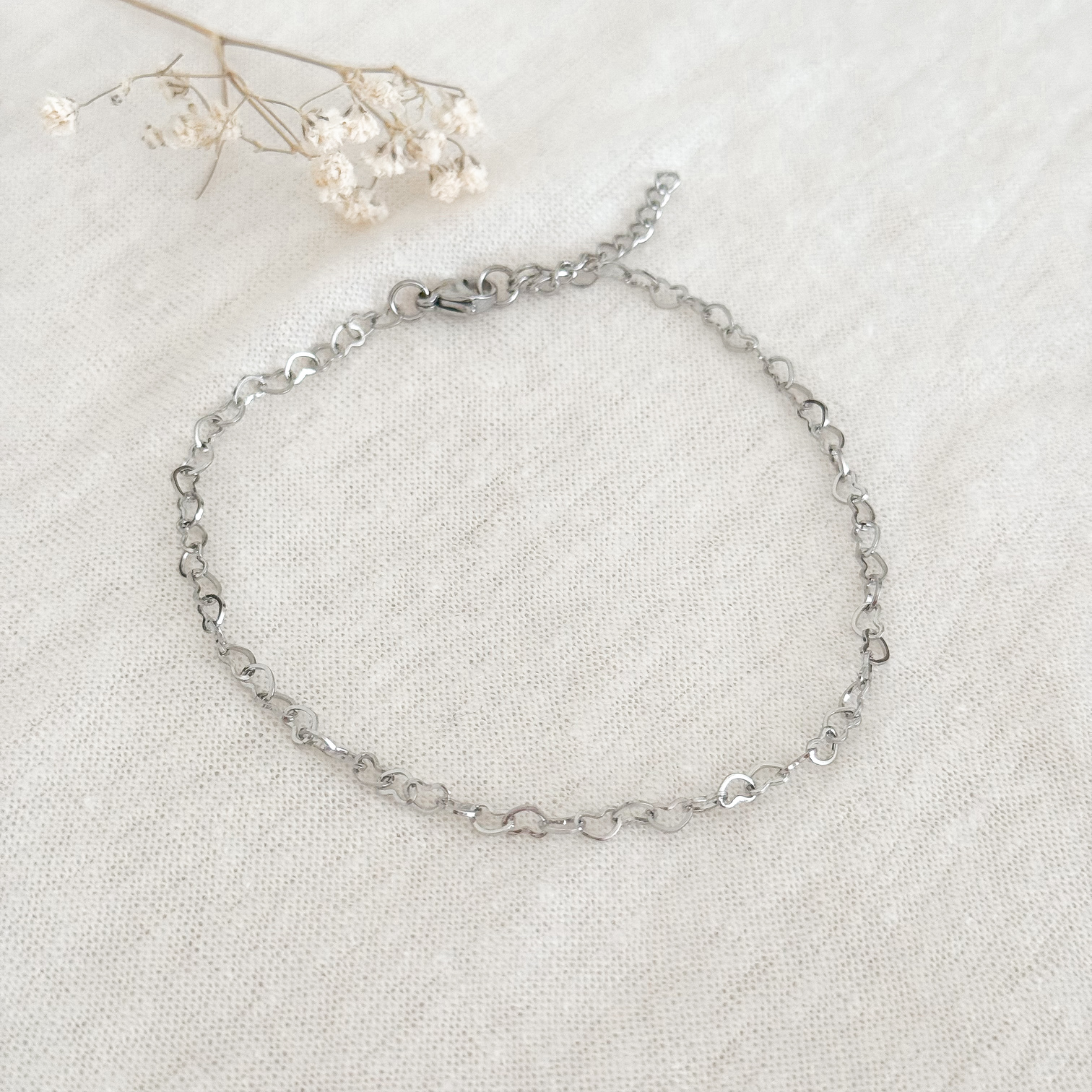 Hartjes Enkelbandje, gemaakt van stainless steel. Subtiel, speels en vol liefde. Het hartjes enkelbandje is een zomerse must-have die je outfit een romantische touch geeft. Deze enkelband is gemaakt van een fijne schakelketting, waarbij elk schakeltje een klein hartje vormt. Een elegant detail dat bij elke beweging meedanst om je enkel.