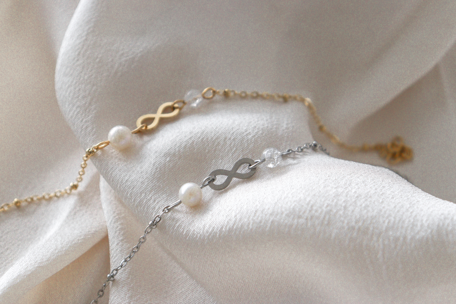 De Infinity & Parel Armband kan mooi gecombineerd worden met onze andere bruidssieraden. Bekijk hier de rest van de Bruidssieraden Collectie.