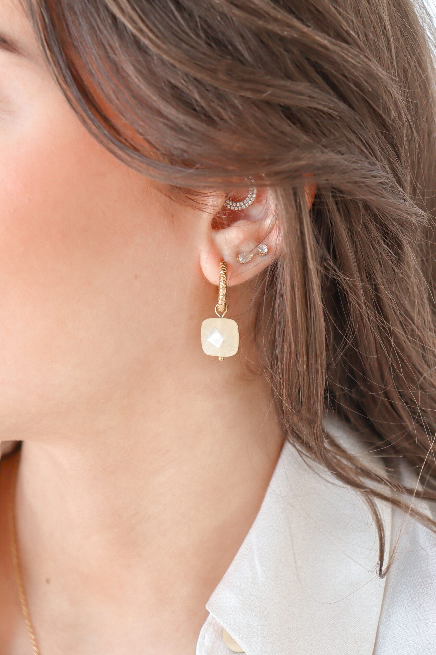 De Jade Edelsteen Oorringen zijn een combinatie van een minimalistisch ontwerp en de zachte uitstraling van de edelsteen zelf. De oorringen zijn voorzien van een facet geslepen Jade edelsteentje, waardoor het licht mooi wordt weerkaatst en de edelsteen extra diepte krijgt. De combinatie van de stainless steel oorring en de zachte kleur van het Jade steentje maakt deze oorbel perfect voor dagelijks dragen en makkelijk combineren. Ze zijn licht van gewicht en comfortabel.