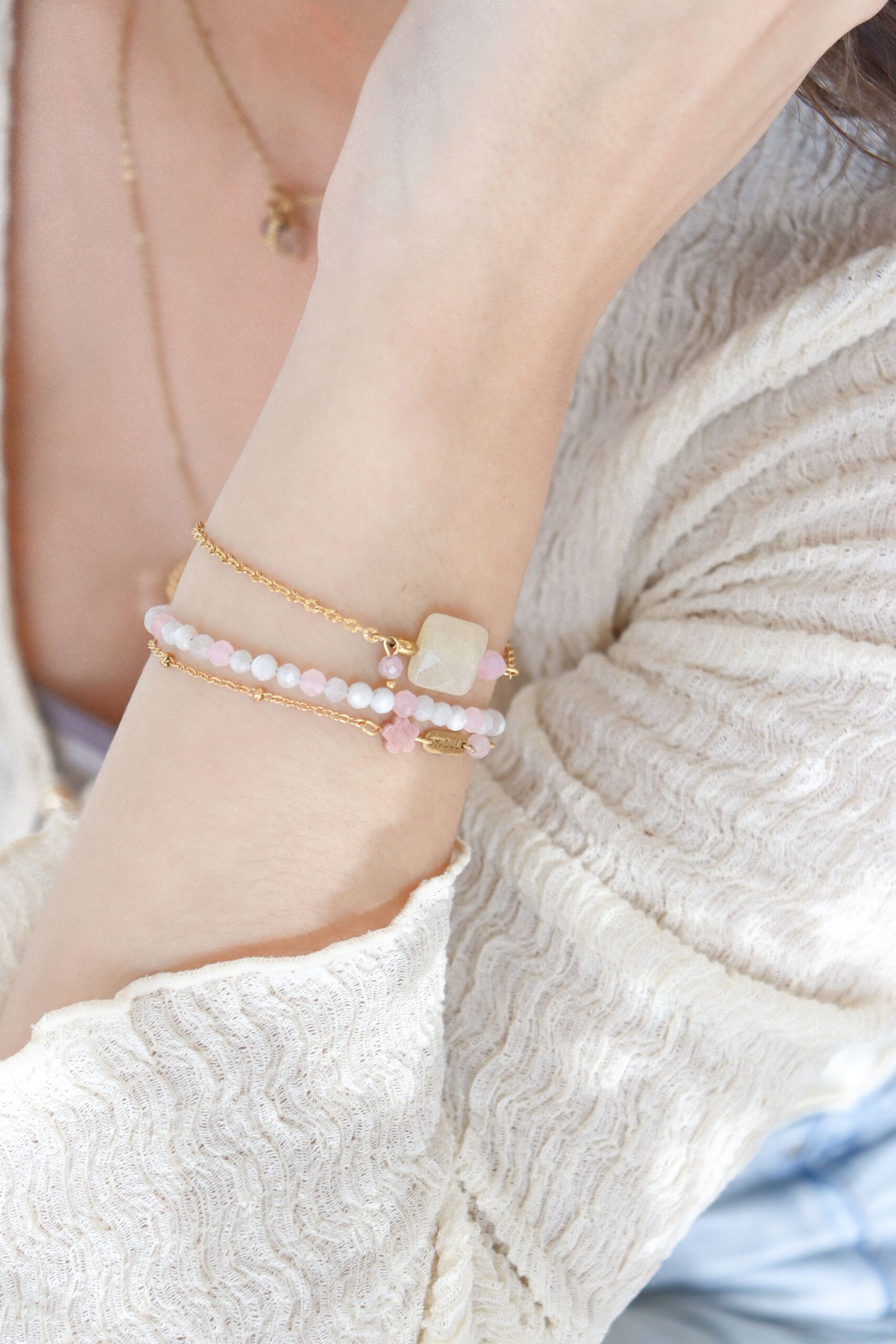 Deze edelsteen armband combineert een zachte uitstraling met diepe symboliek en is een prachtig sieraad om elke dag te dragen als herinnering aan rust, kracht en zachtheid.