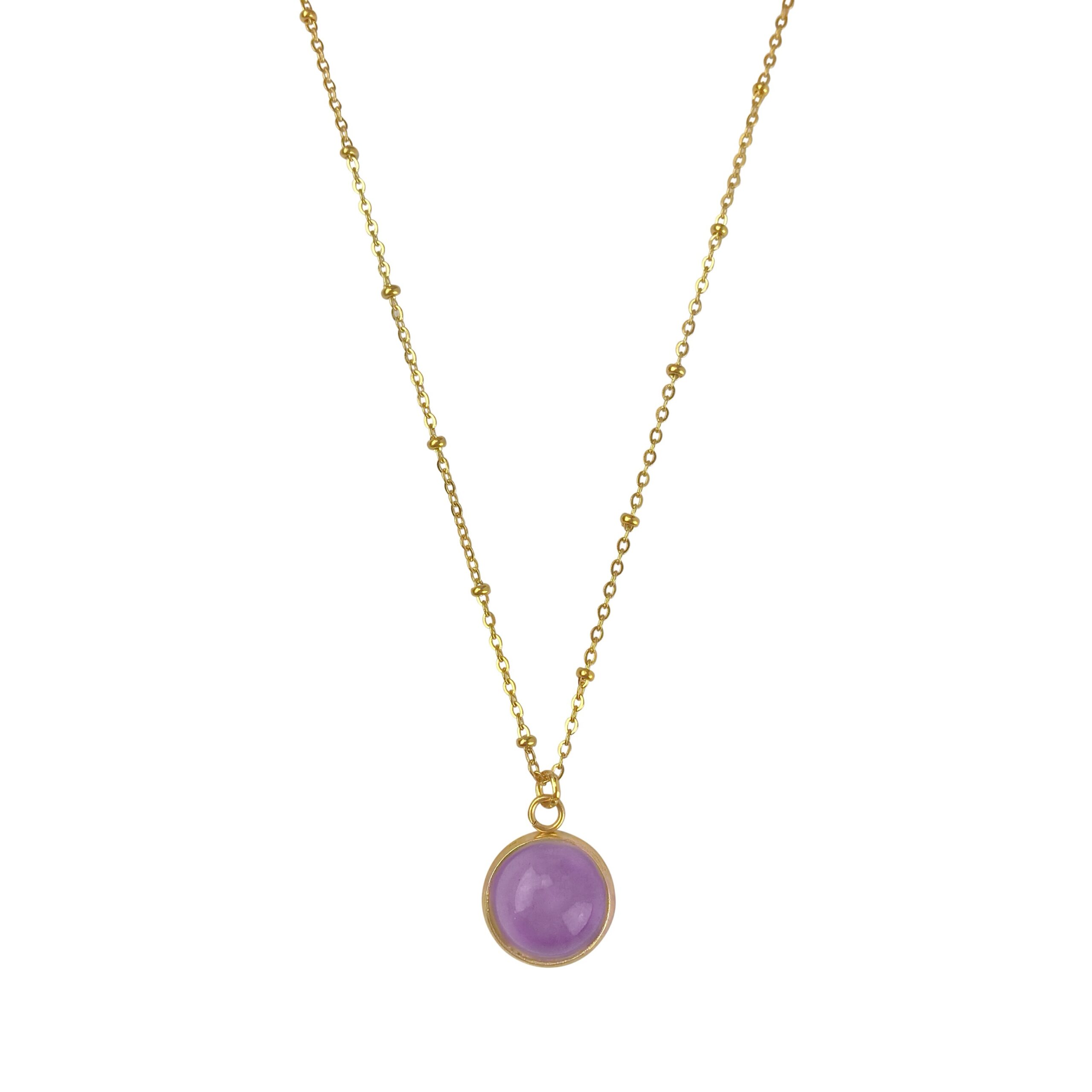 Stainless steel ketting met een Amethist hanger. Omdat het een natuur product is, is elke steen anders.