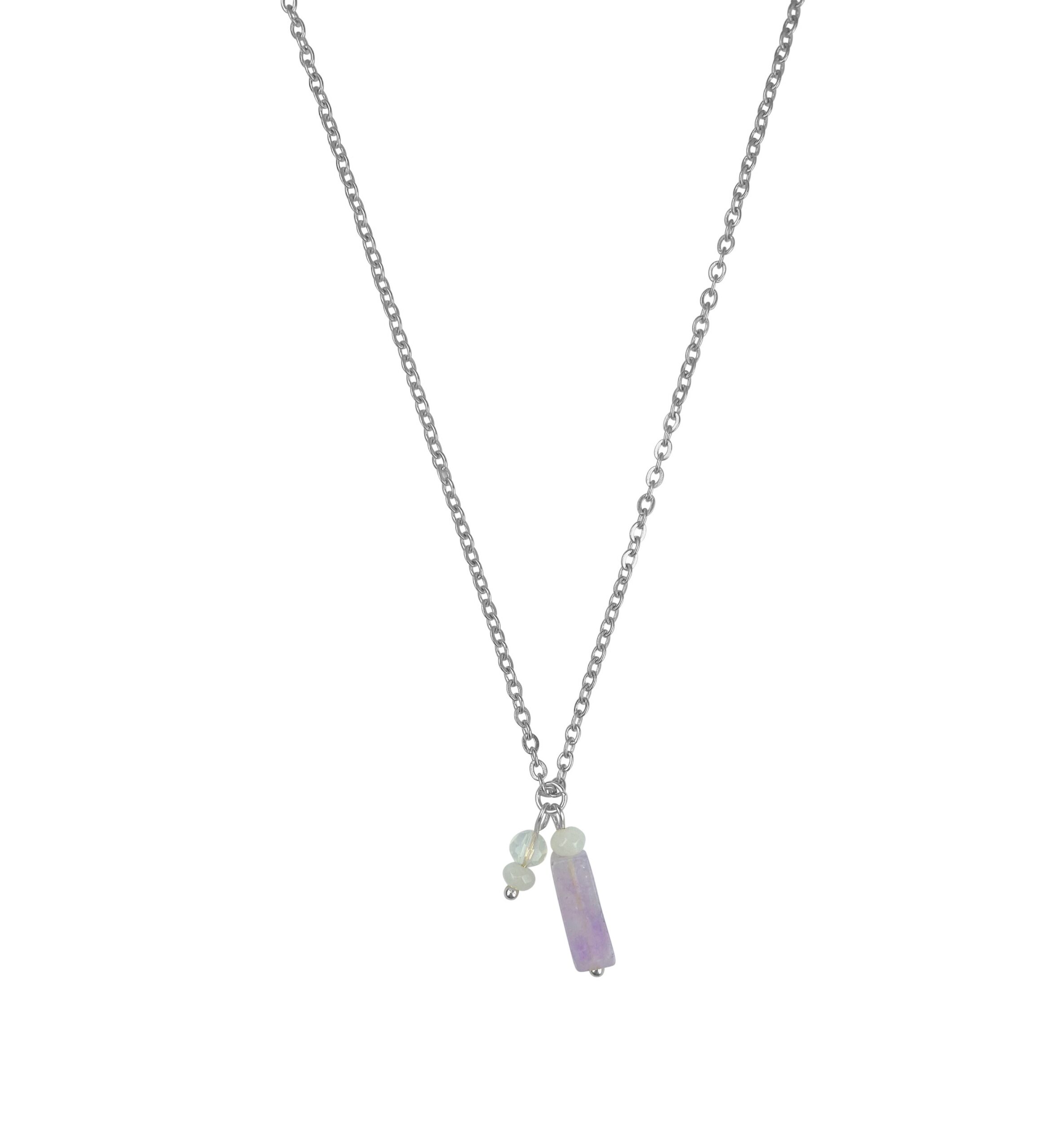 Stainless steel ketting met Amethist, Opaliet en een Jade steentje. De prachtige steen Amethist past precies in de trendkleuren van nu en heeft ook nog eens een mooie werking.