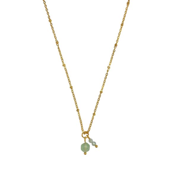 Aquamarijn & Aventurijn Ketting, gemaakt van stainless steel. De edelstenen zijn facet geslepen en schitteren vanuit elke hoek. De ketting is hypoallergeen, sterk, duurzaam en kleurvast.