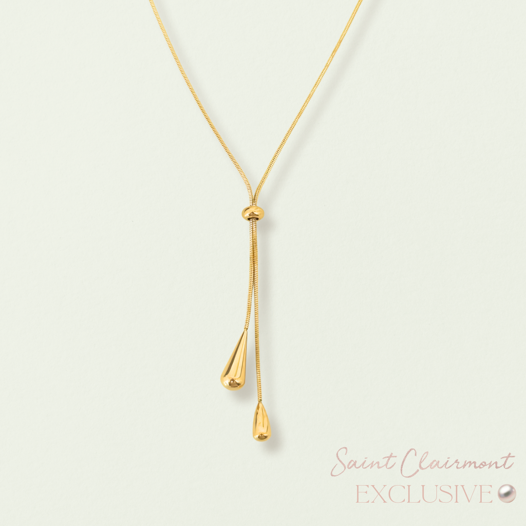 Ketting Belle Âme, gemaakt van stainless steel. De ketting is speels & chique. De druppels aan de ketting hebben een prachtige glans. Het kettinkje is een snake ketting, dit is een chique kettinkje die door de dichte schakels op elkaar, op een slang lijkt. De ketting heeft een mooie glans en geeft elke outfit de perfecte afwerking.
