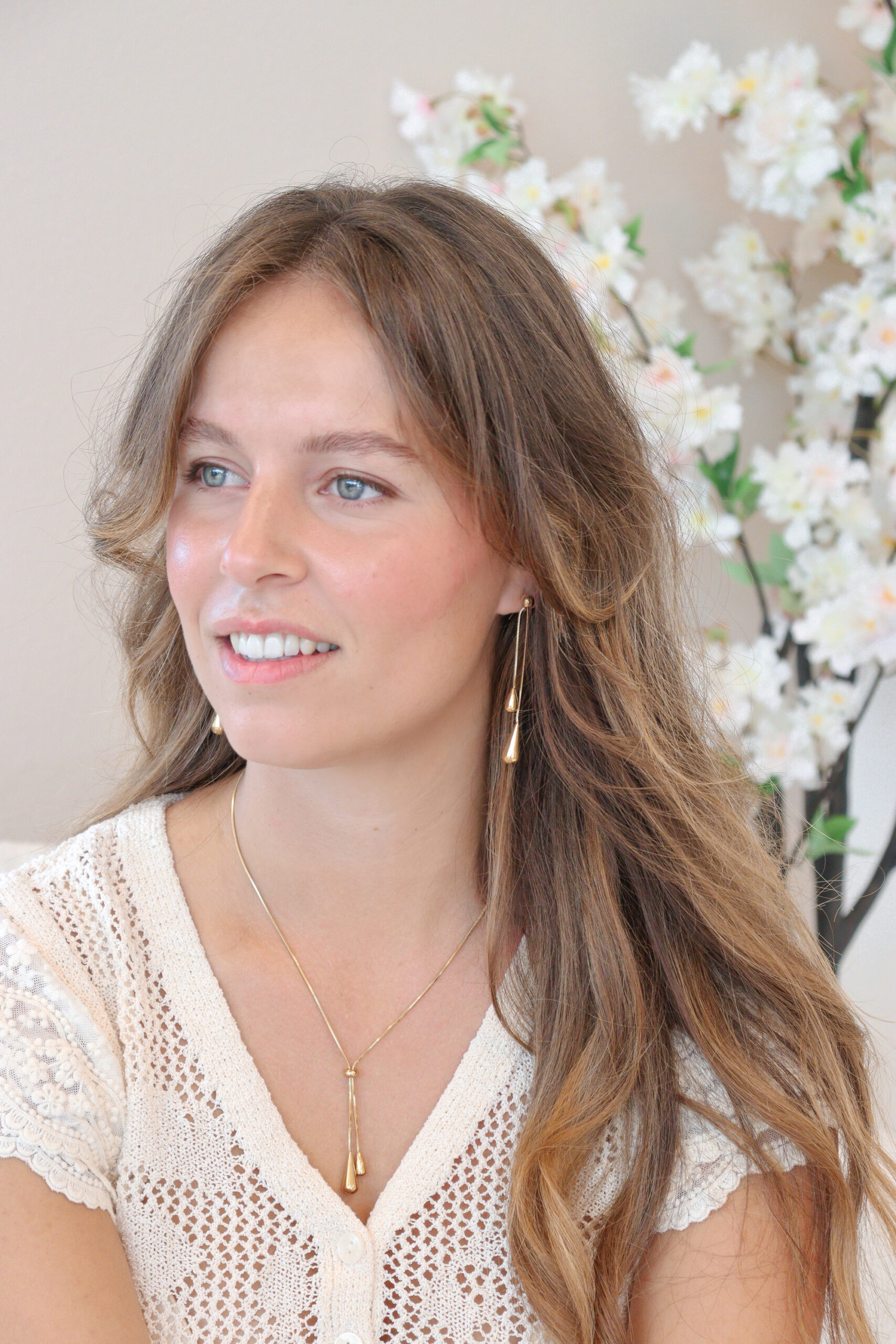 Lengte ketting: 50 cm als je het ringetje helemaal naar beneden geschoven hebt. Je kunt het ringetje naar boven en beneden schuiven en zo de druppels aan een lang of kort stukje ketting laten bungelen. Zo maak je de ketting korter en langer.