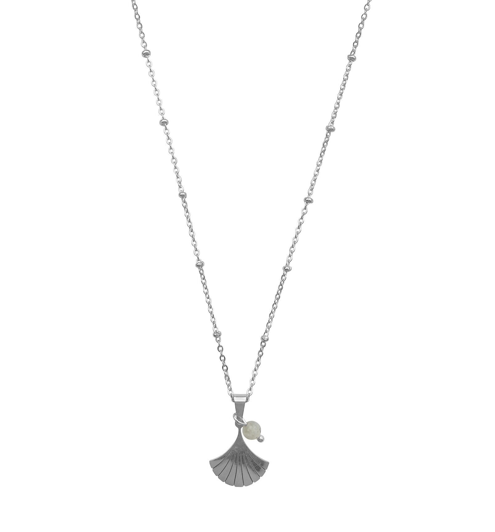 Stainless steel ketting met een gingko blad bedel en een Labradoriet steentje.