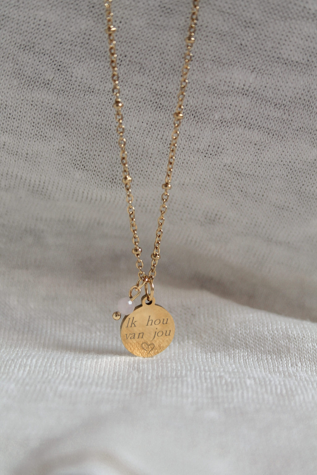 Ketting Ik Hou Van Jou & Rozenkwarts – Goud