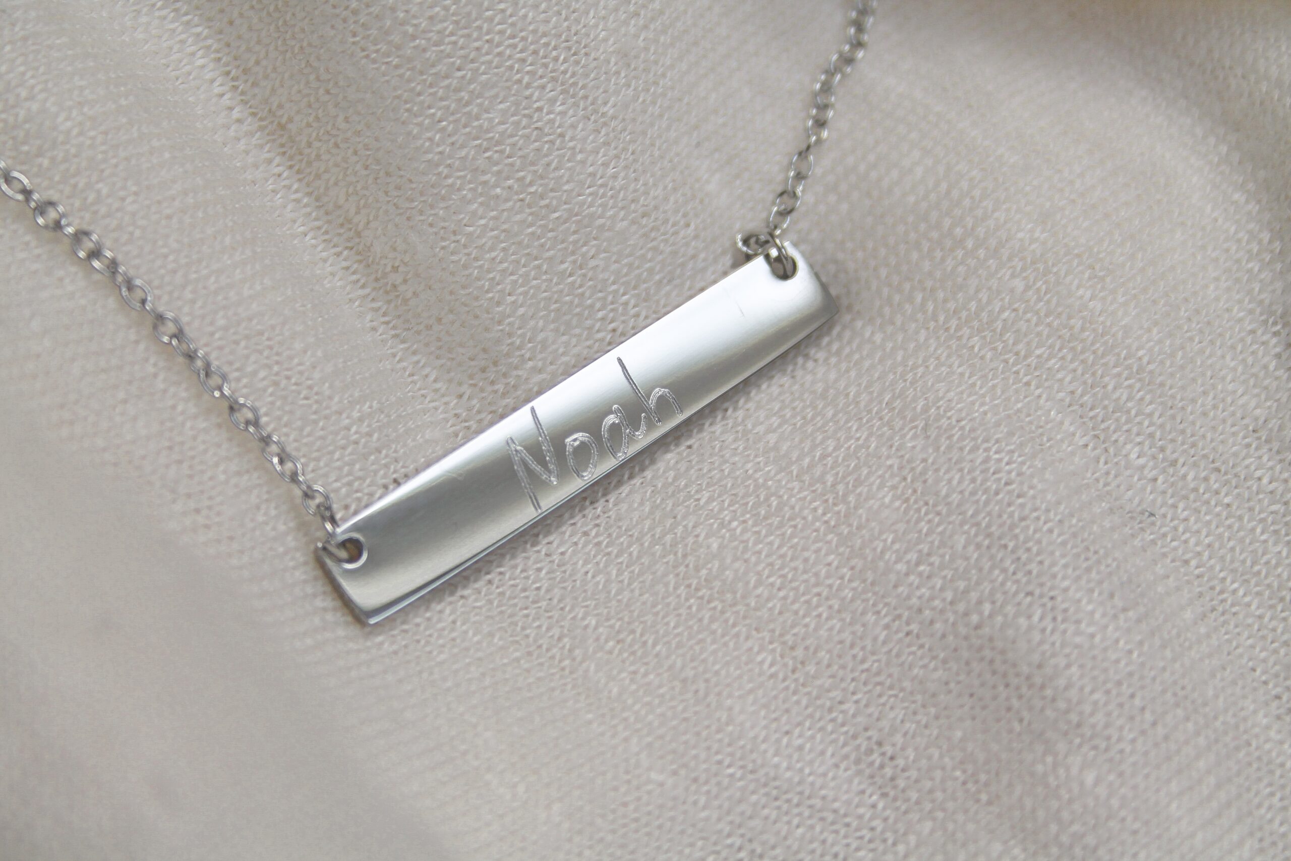 Ketting plaatje handgeschreven. De ketting en het plaatje zijn gemaakt van Stainless steel. Laat een door jou of door iemand anders handgeschreven naam graveren. We hebben zelf een hartje gemaakt, die kun je achter de naam laten graveren. Ook mag je een foto/plaatje aanleveren met de naam in een bepaald lettertype geschreven. Kom je er niet uit? Stuur dan even een berichtje, dan kiezen we samen een mooi lettertype.