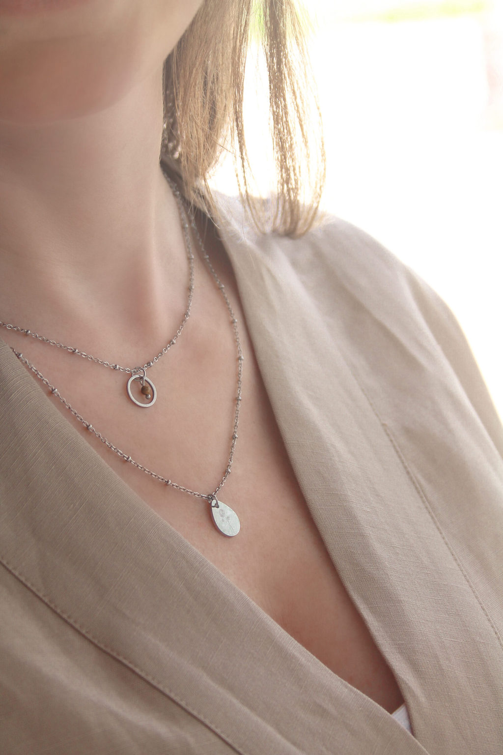 Deze ketting is perfect te combineren met de Ketting Tijgeroog Hartje Ring. Doordat deze variant iets langer is en de cirkel een slagje groter, ontstaat er een speels en stijlvol laagjes-effect.