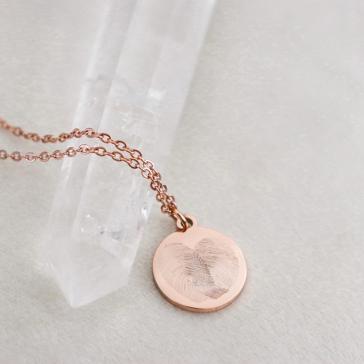 Ketting Vingerafdruk Hart 15 mm – Rose Goud