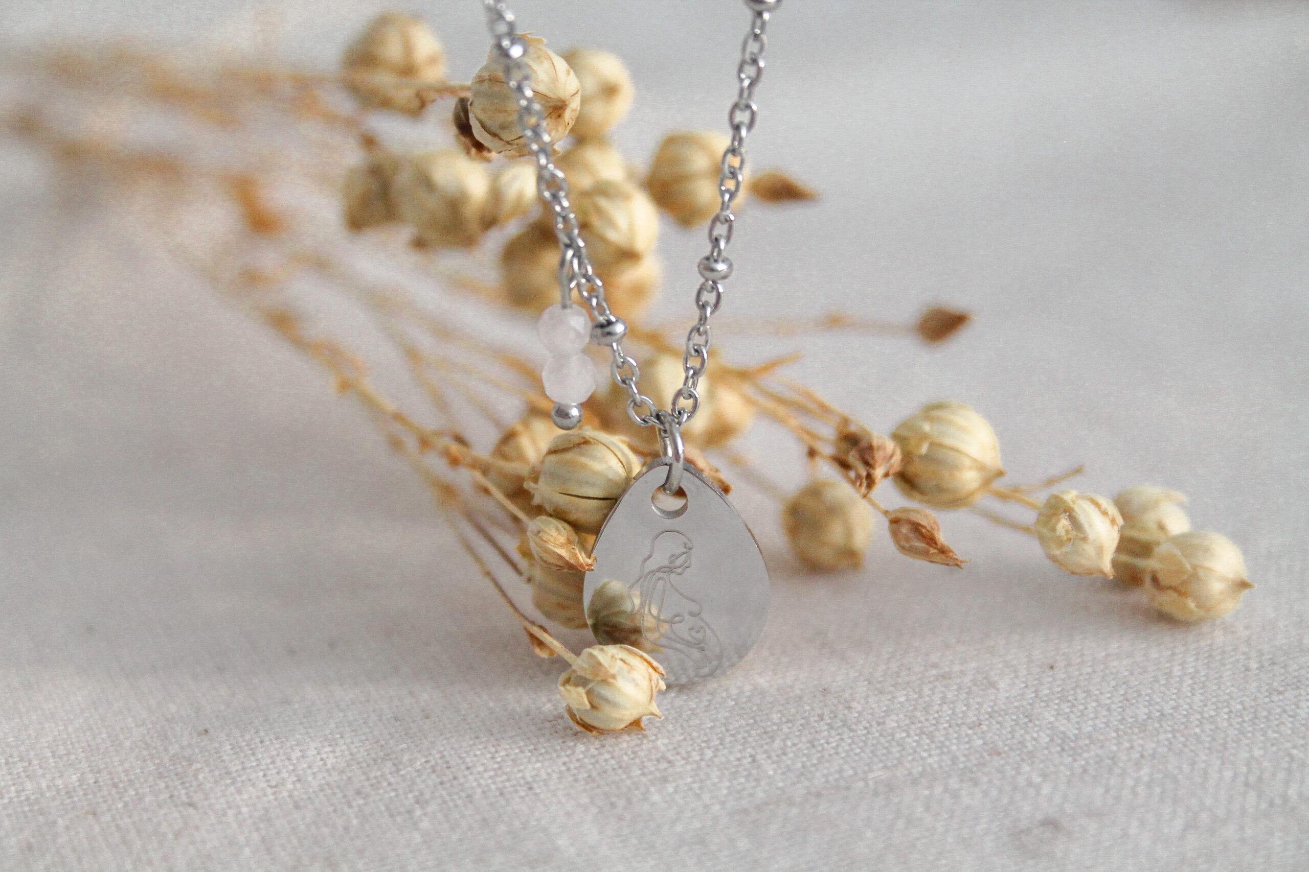 Ketting Zwangere Vrouw & Rozenkwarts – Zilver