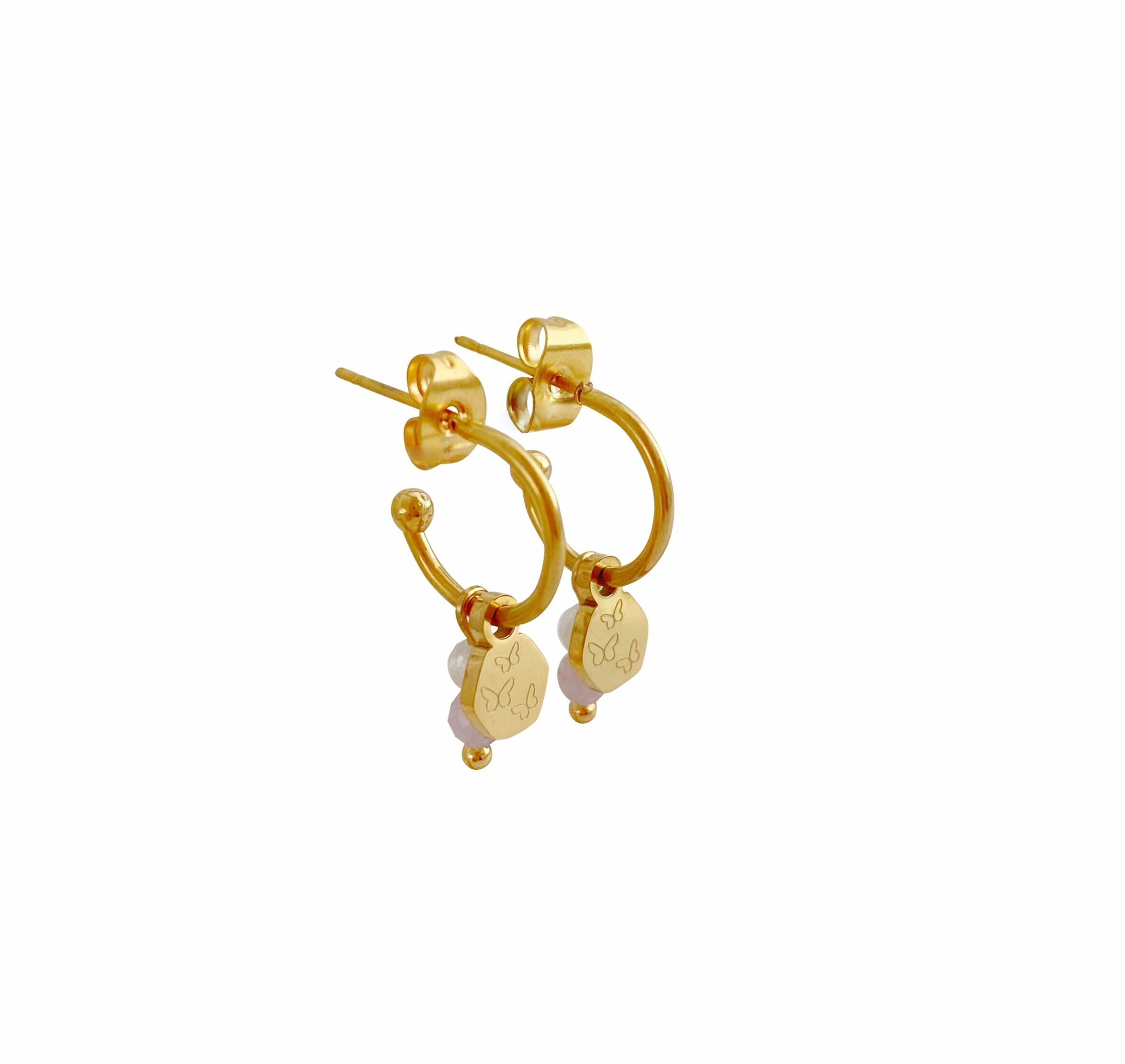 Kunziet, Maansteen & Vlindertjes Oorringen – Goud