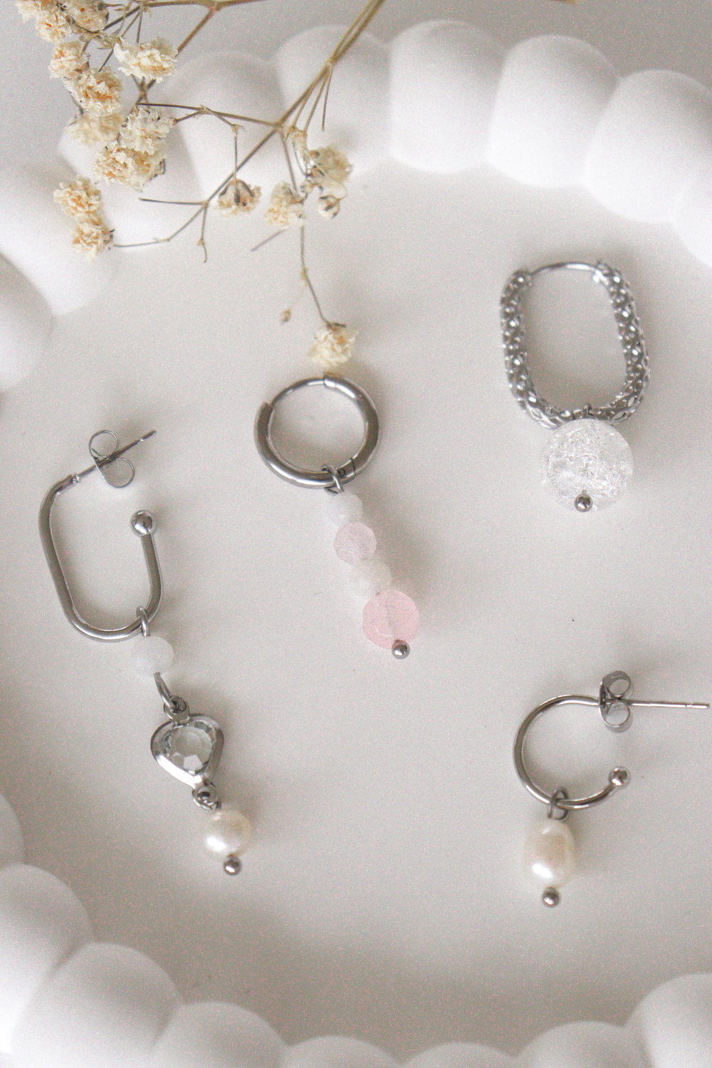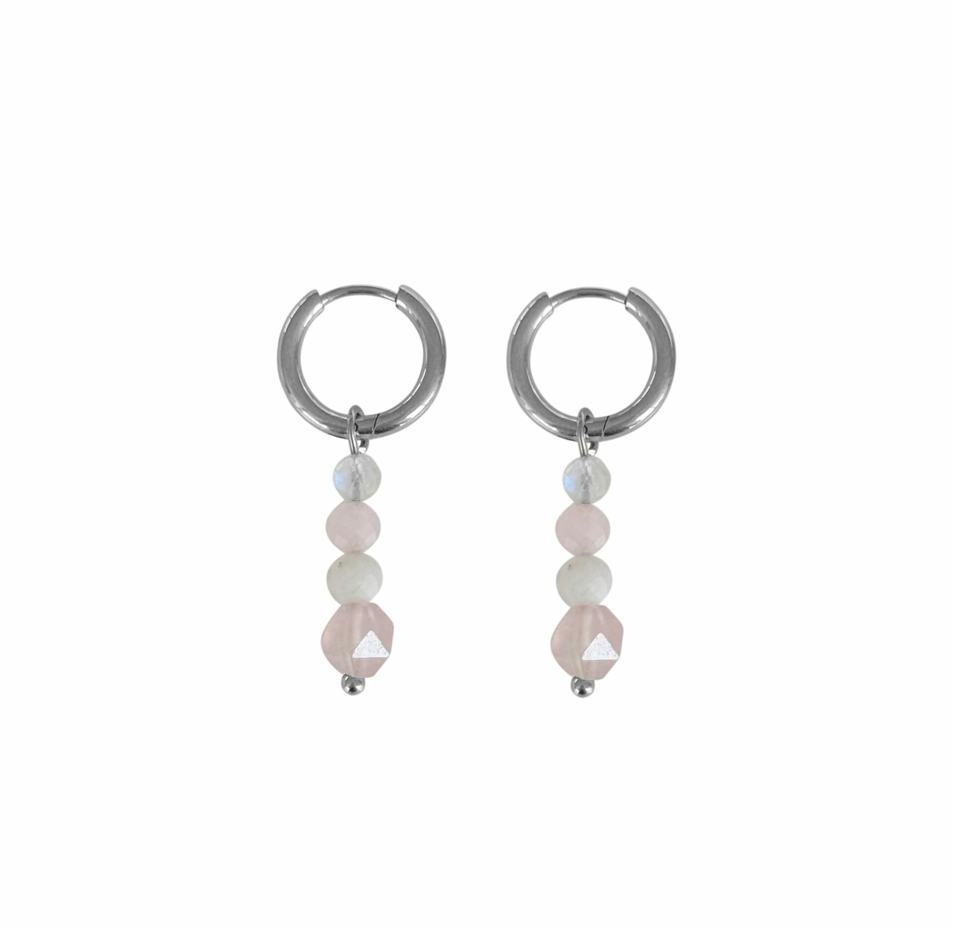 Maansteen & Rozenkwarts Oorringen – Zilver