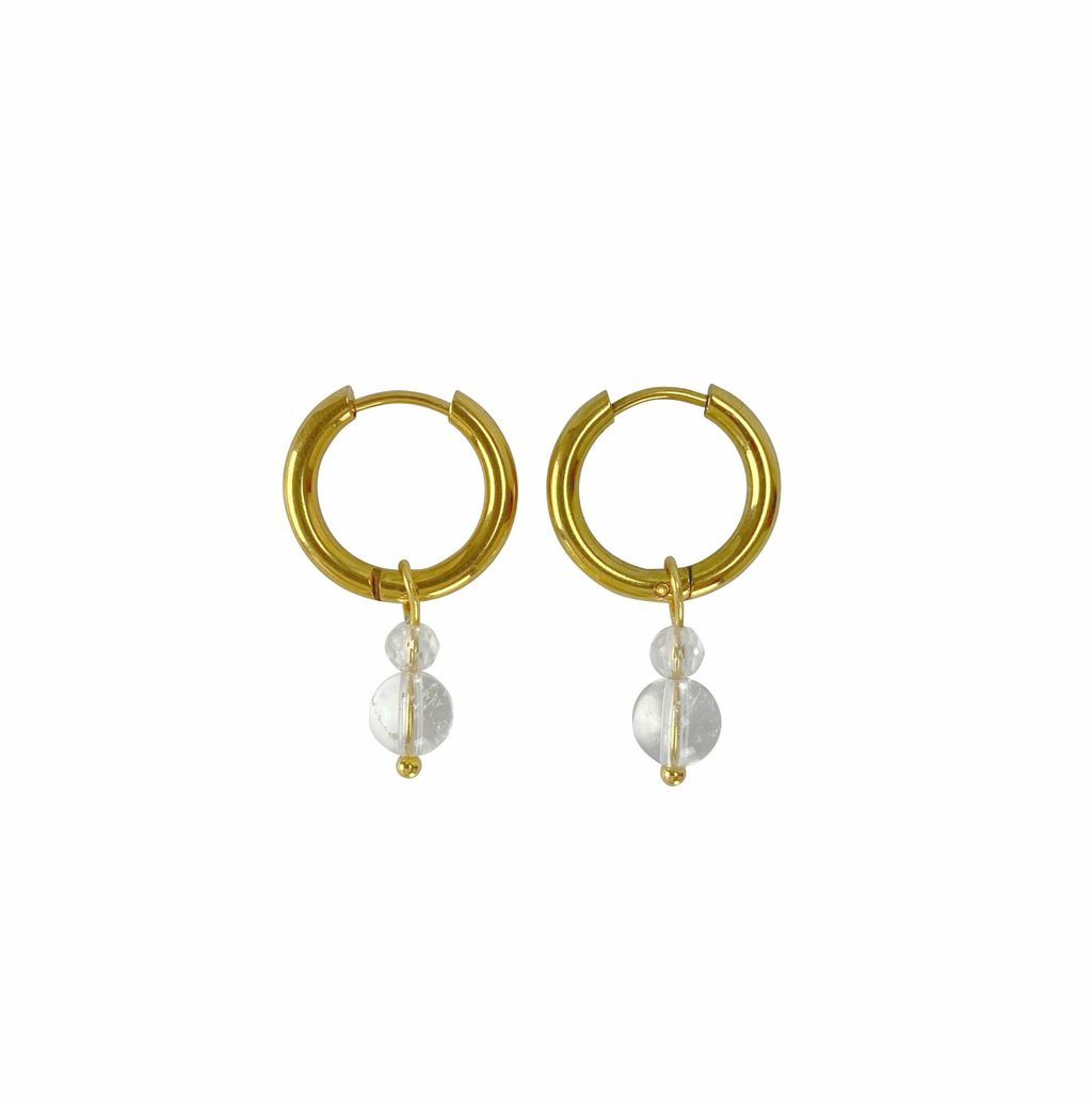 Stainless steel oorringen met twee Bergkristal steentjes.