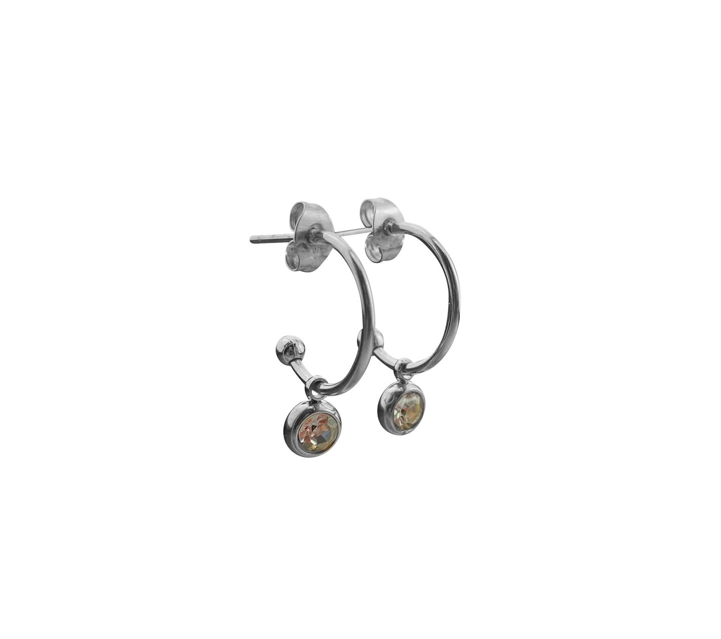 Stainless steel oorringetjes met een diamant hangertje.