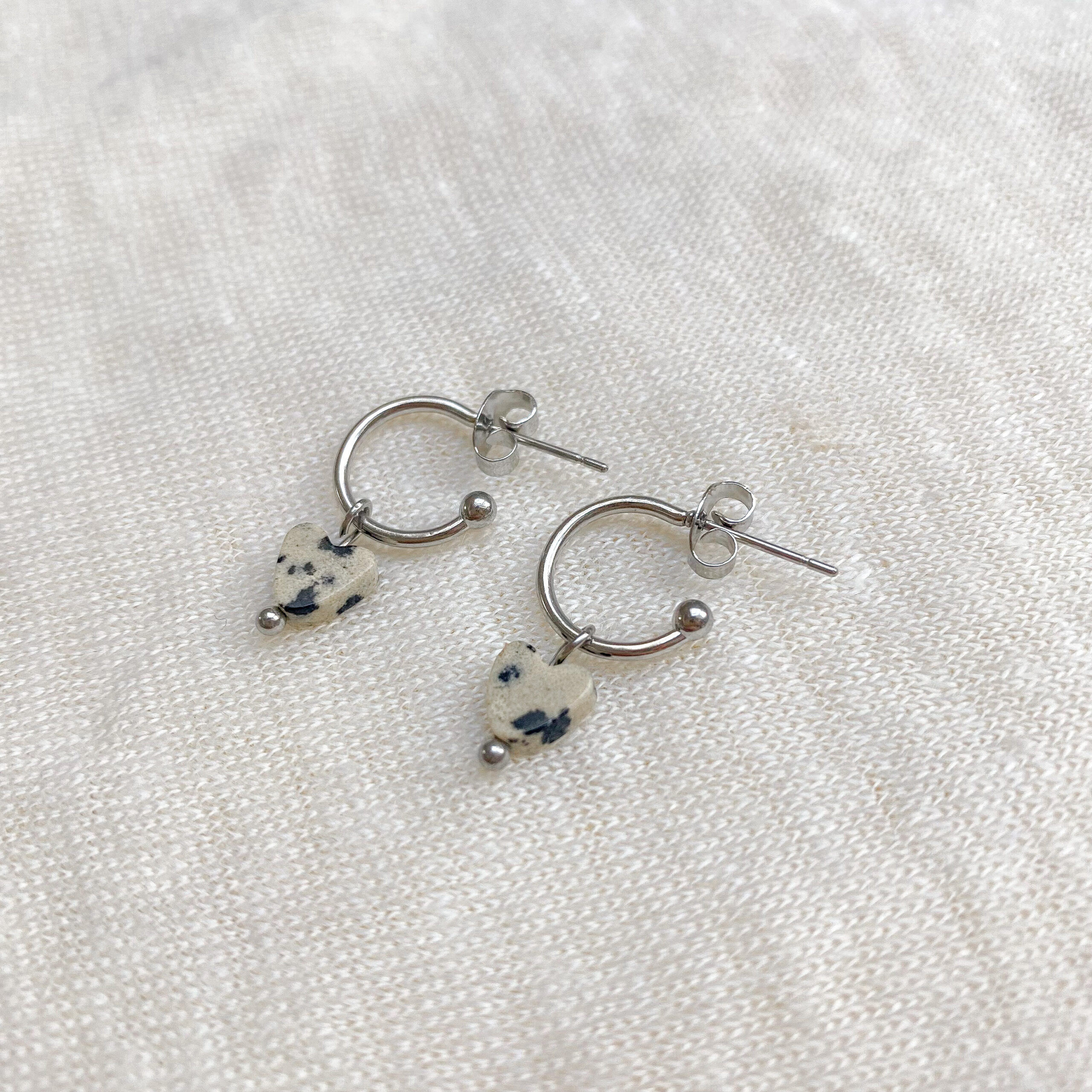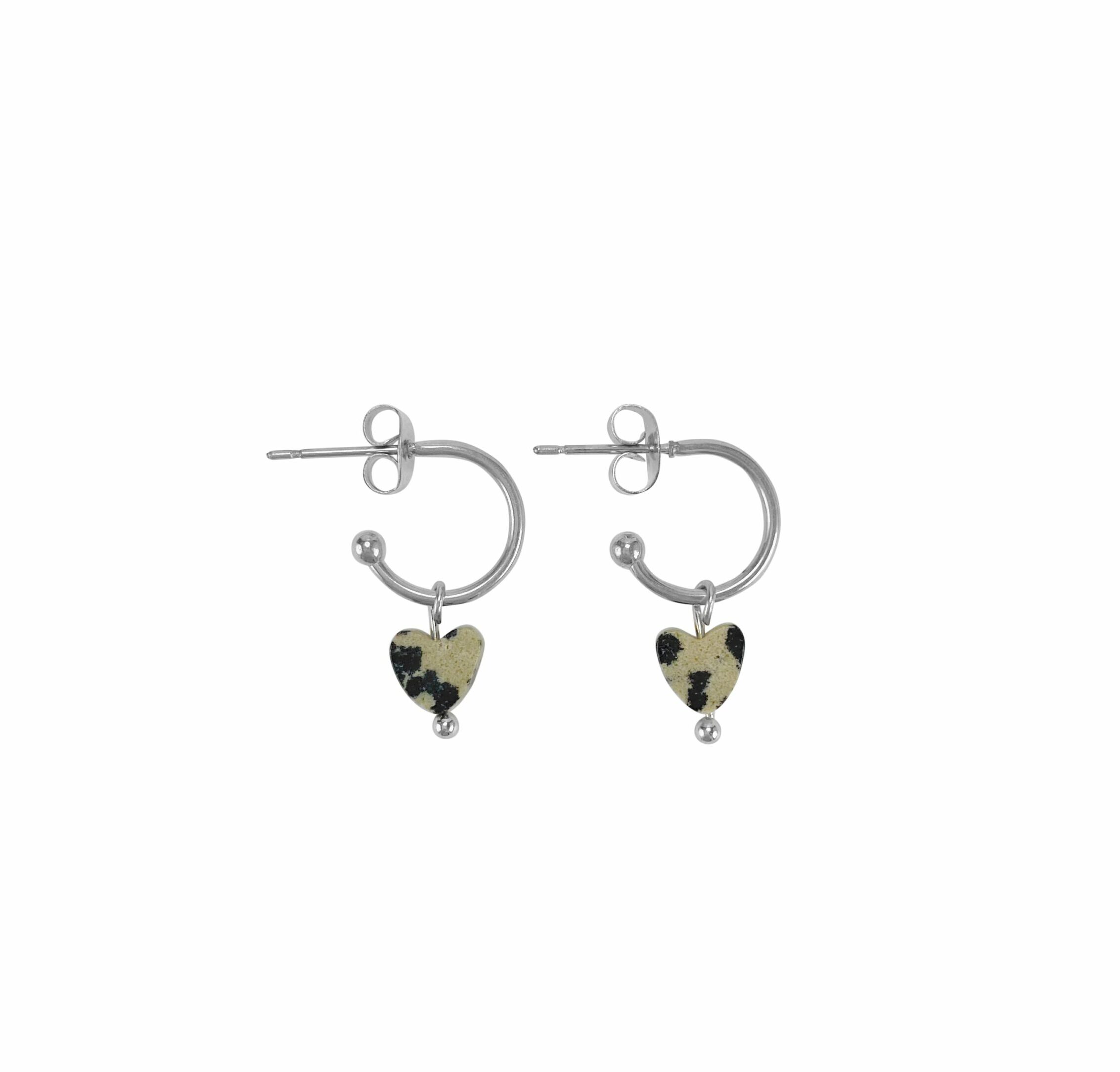 Oorringetjes Dalmatiër Jaspis Hartje – Zilver