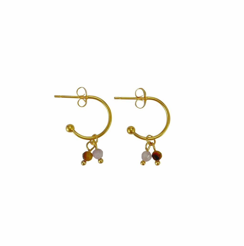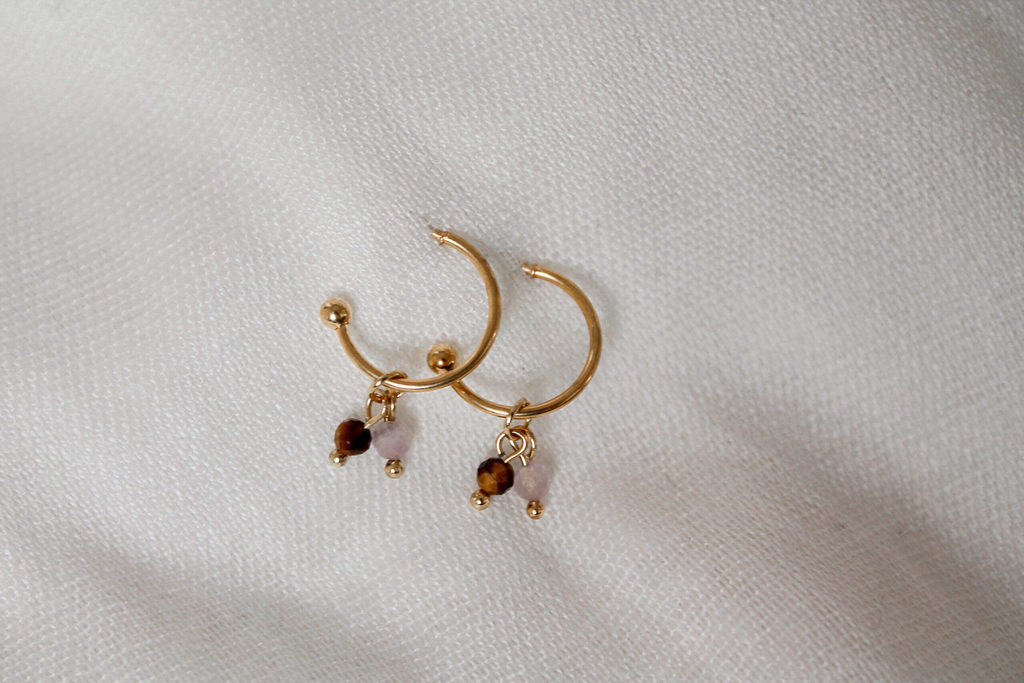 Stainless steel oorringen met een Tijgeroog & Kunziet steentje. De steentjes zijn facet geslepen, dus glinsteren vanuit elke hoek.