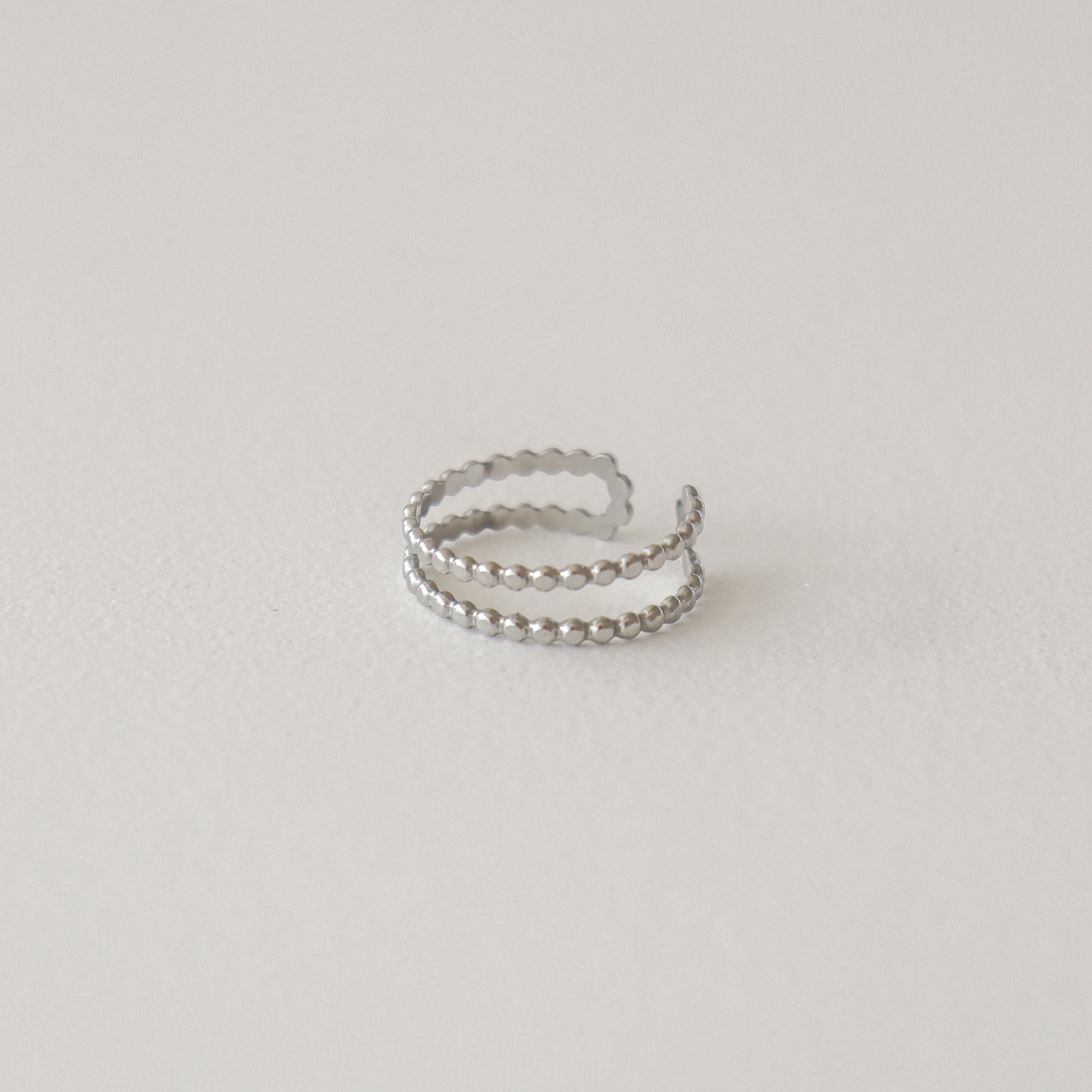 Ring Bolletjes, gemaakt van stainless steel. Kleine bolletjes die aan elkaar vast zitten, vormen samen deze super leuke trendy ring. De ring is verstelbaar en past bij elke gelegenheid.