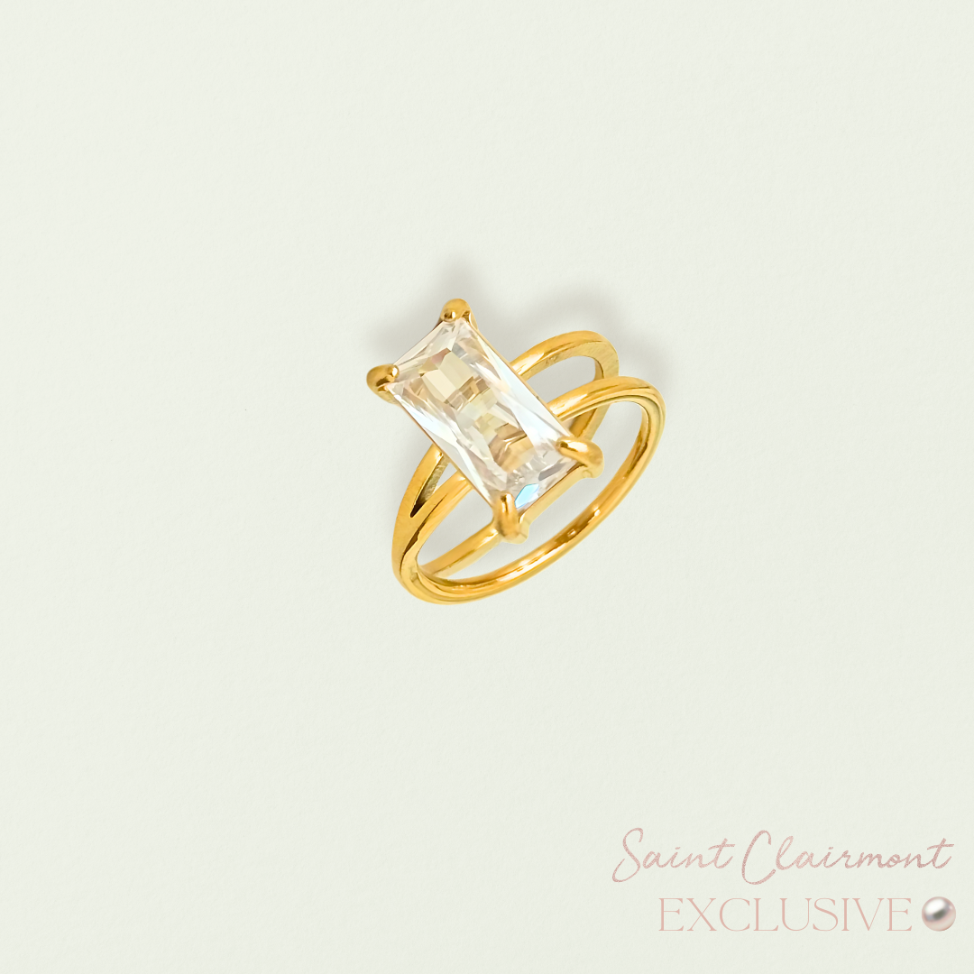 Ring Luce Di Vita. De Luce di Vita ring is meer dan alleen een sieraad, het is een krachtig symbool verpakt in een elegant en modern ontwerp. De ring straalt eenvoud en verfijning uit, maar verrast je met een subtiel detail dat direct in het oog springt: een prachtige rechthoekige cubic zirkonia steen die aan één zijde wordt doorbroken door twee fijne lijnen. Alsof de ring daar even is gesplitst, maar toch moeiteloos samenkomt.