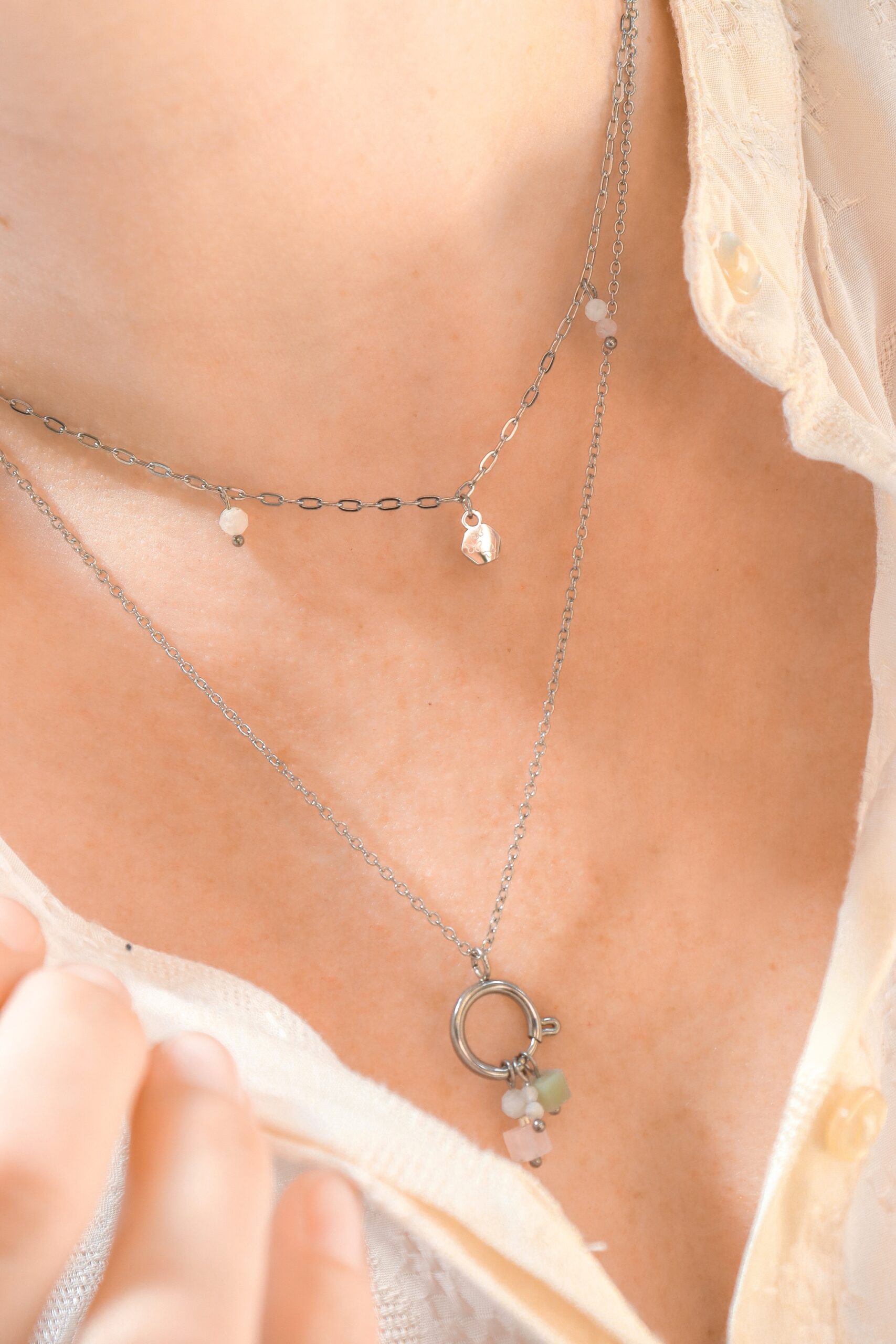 Slot Ketting 14 mm & Edelsteen Hangertjes – Zilver