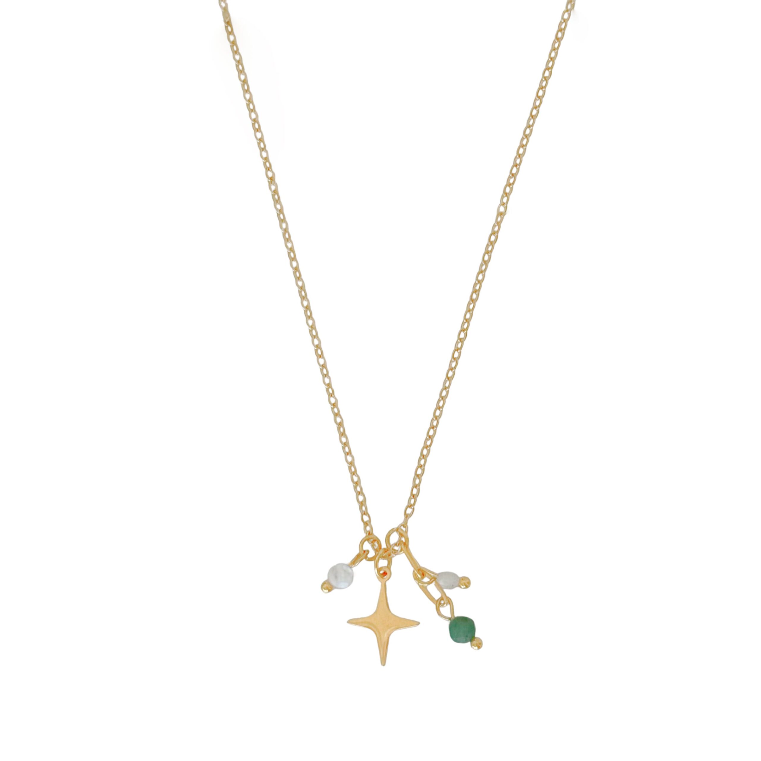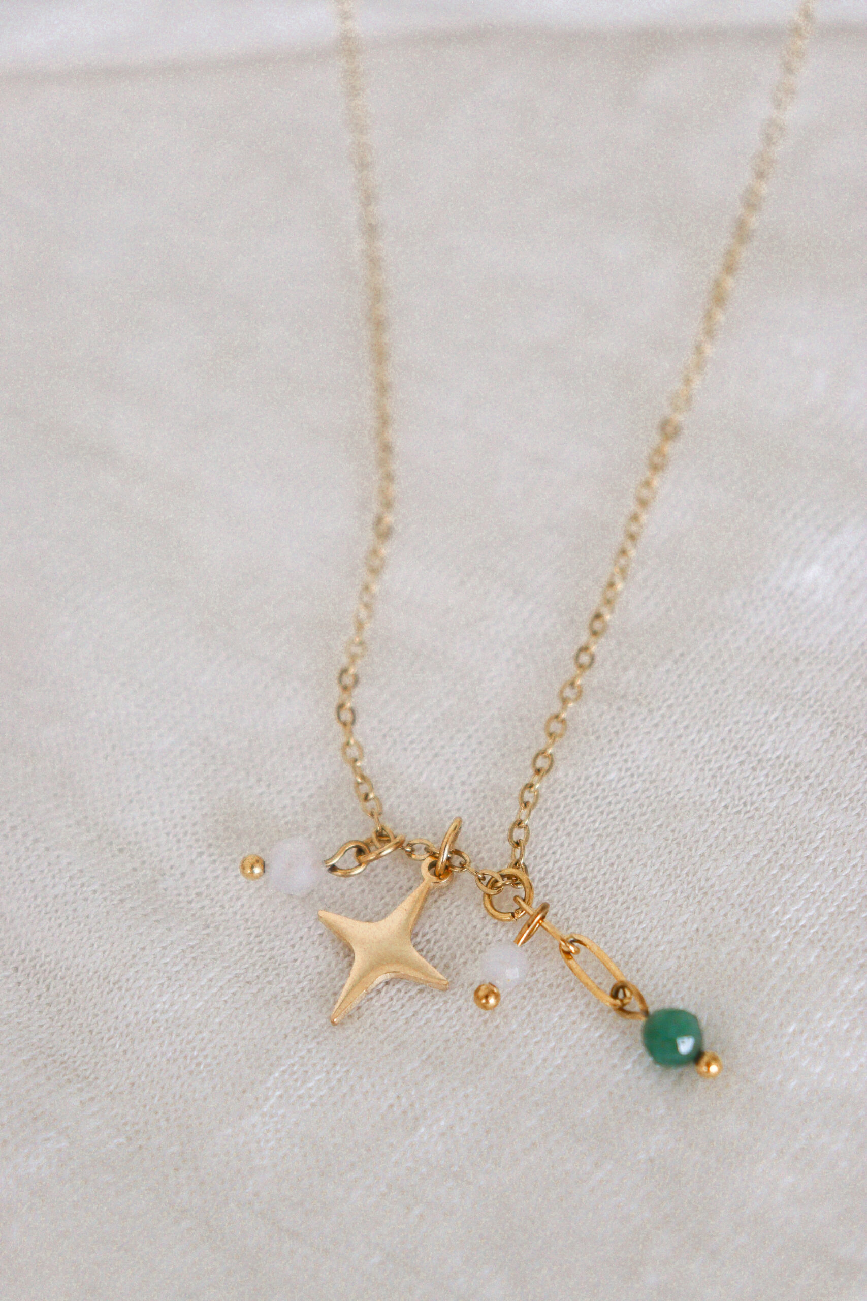 Smaragd & Maansteen Ster Ketting, gemaakt van stainless steel. Straal als de sterren tijdens de feestdagen. De Saint Clairmont Ster Ketting is een ode aan licht, hoop en elegantie.