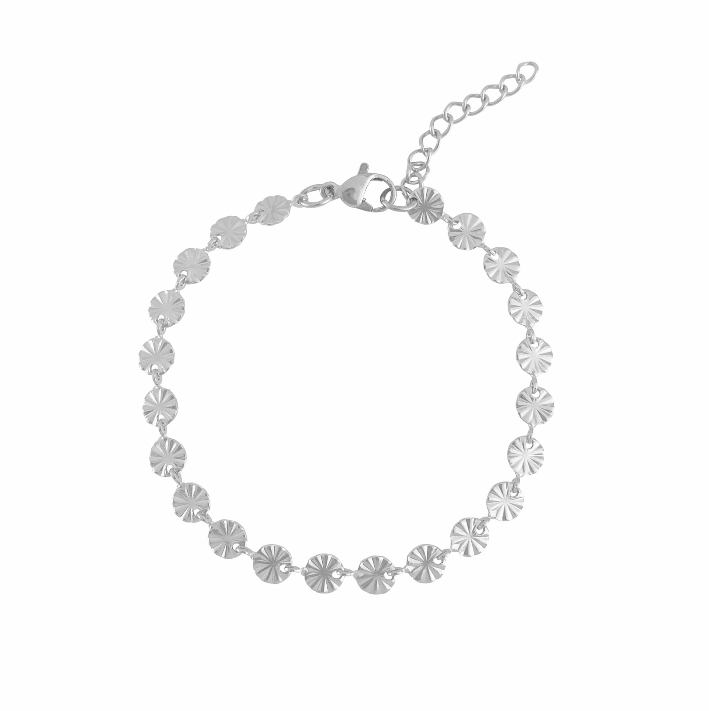 Dit Stainless Steel Musthave Armbandje heeft een elegant ontwerp met fijne, ronde schijfjes die samen een speels en opvallend patroon vormen. Door de licht reflecterende, gestructureerde oppervlaktes krijgt het armbandje een mooie glans die bij elke beweging subtiel opvalt.