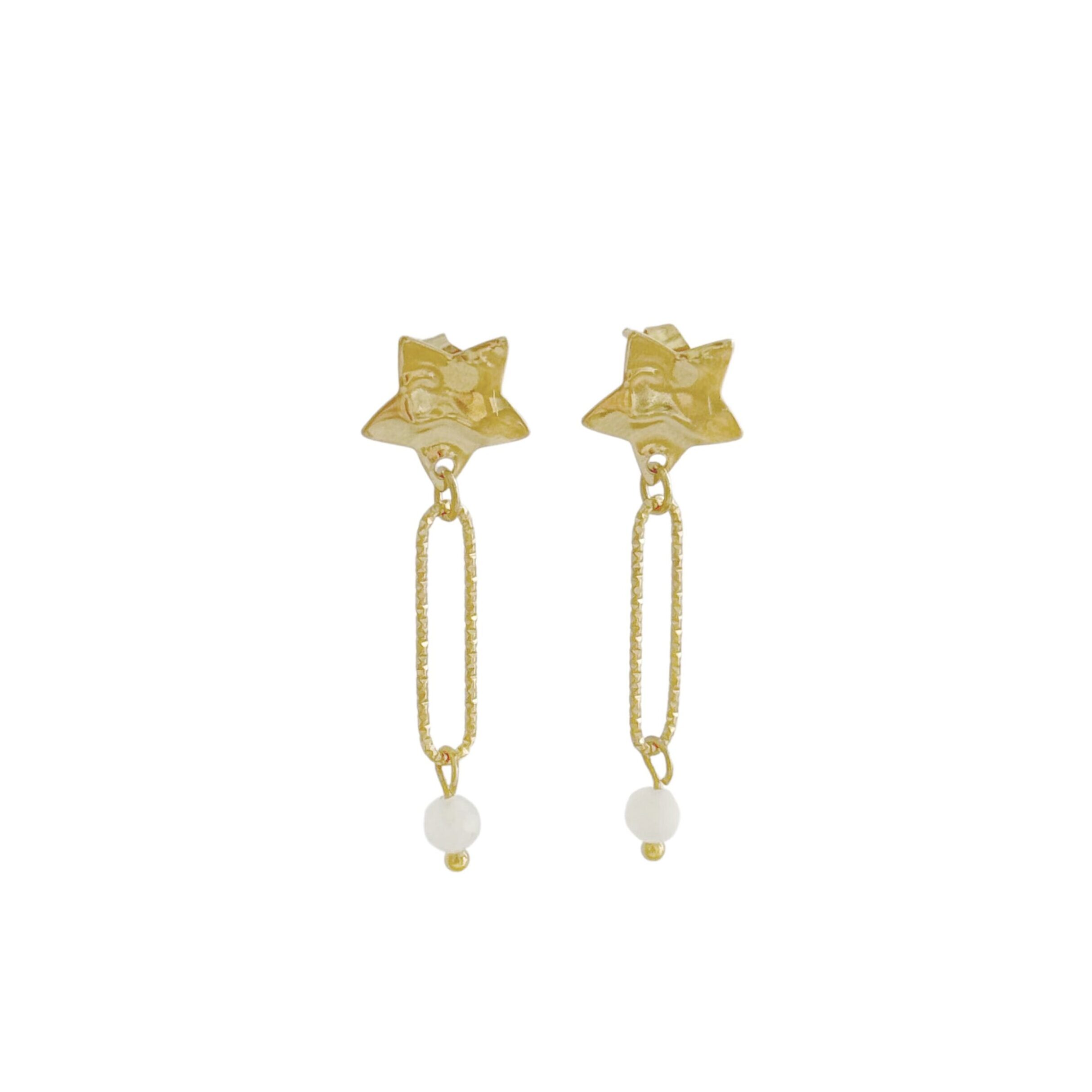 Ster & Maansteen Oorhangers – Goud