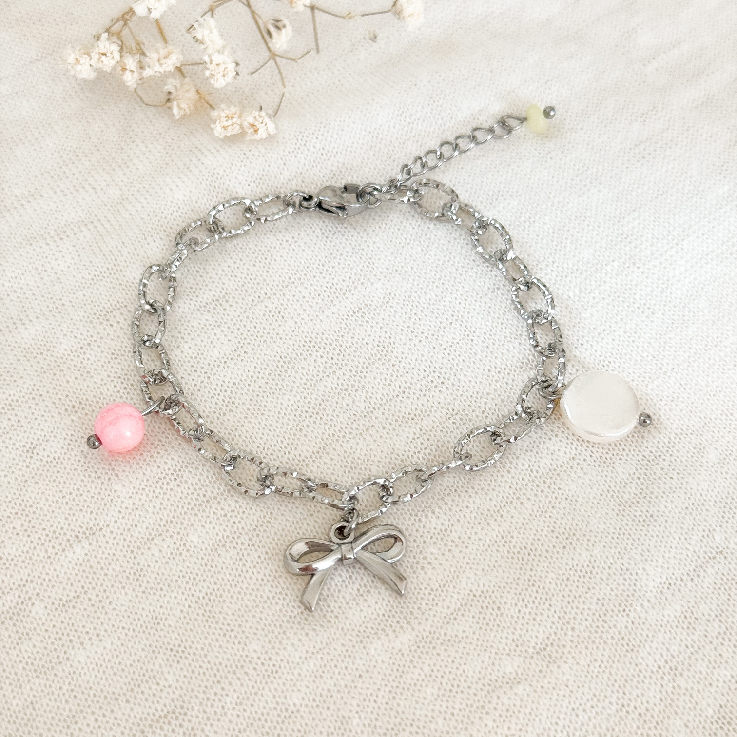 Of je nu op weg bent naar een zomers feestje of gewoon je dag wilt opfleuren met een uniek detail, deze armband vertelt een verhaal. Een mix van elegantie, zomerse vrijheid en speelsheid, allemaal in één sieraad.