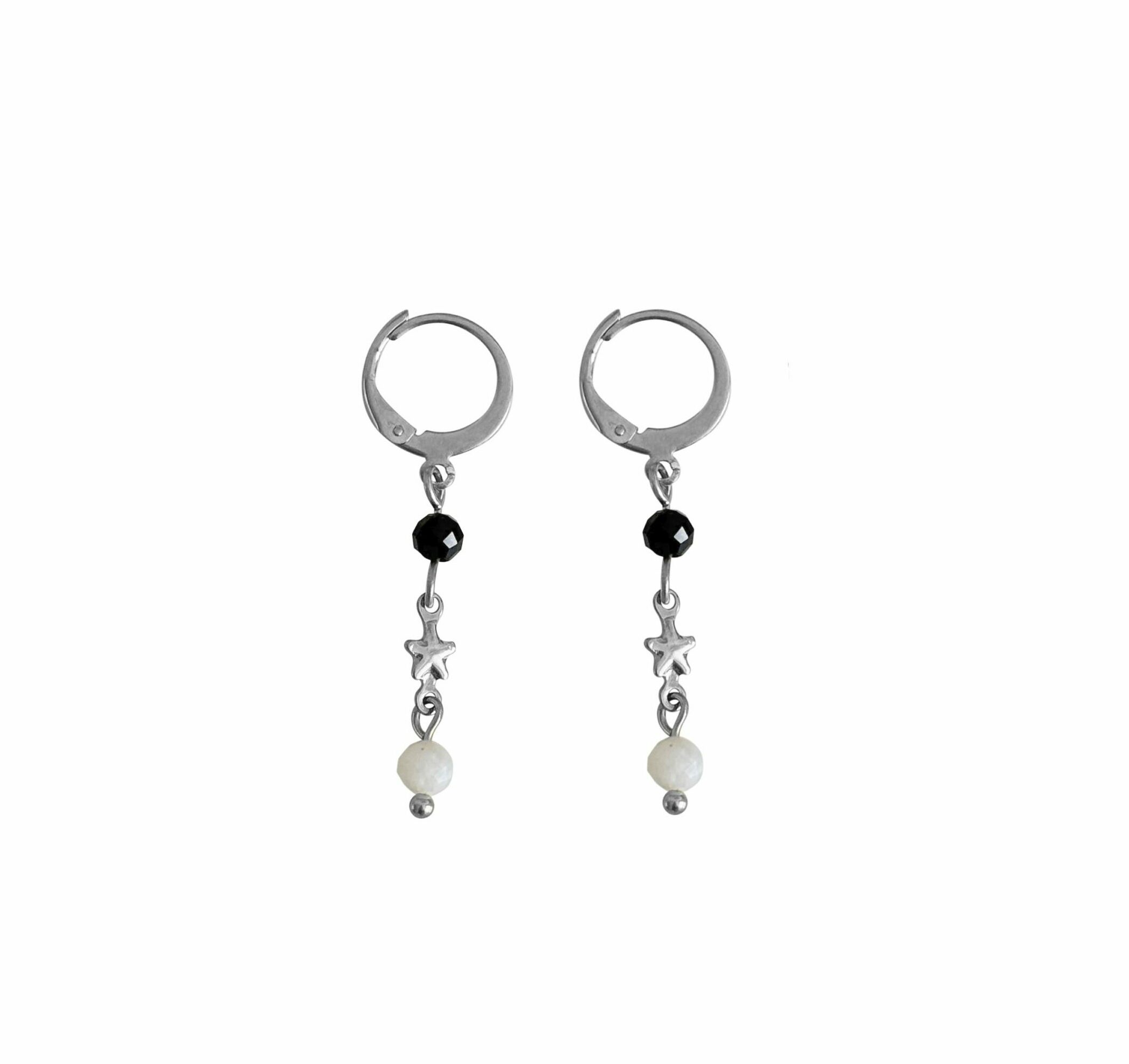 Toermalijn Ster & Maansteen Oorbellen – Zilver