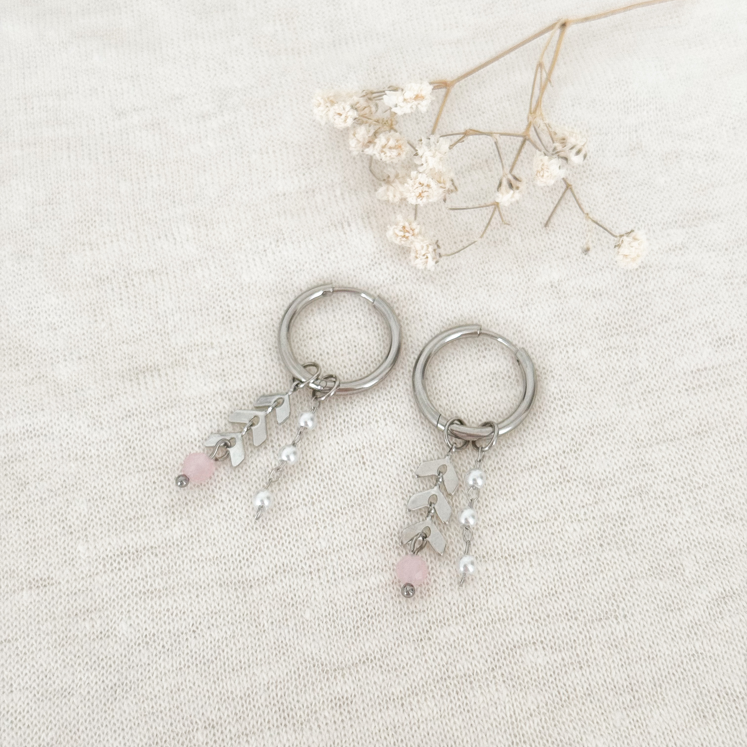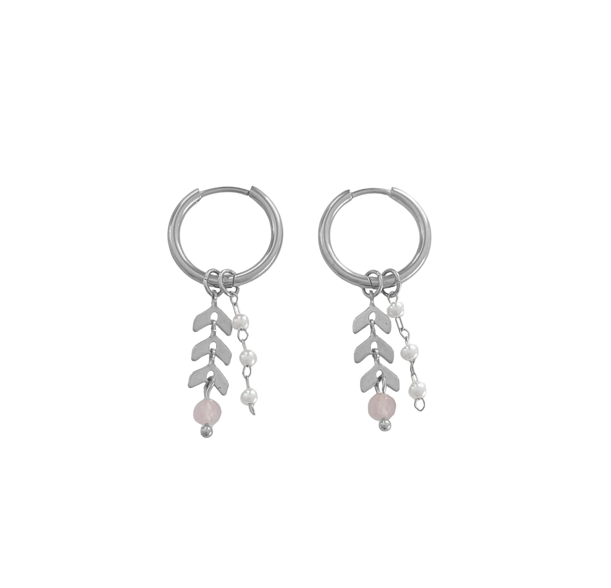 Aan de oorringen hangen drie verfijnde bedels: